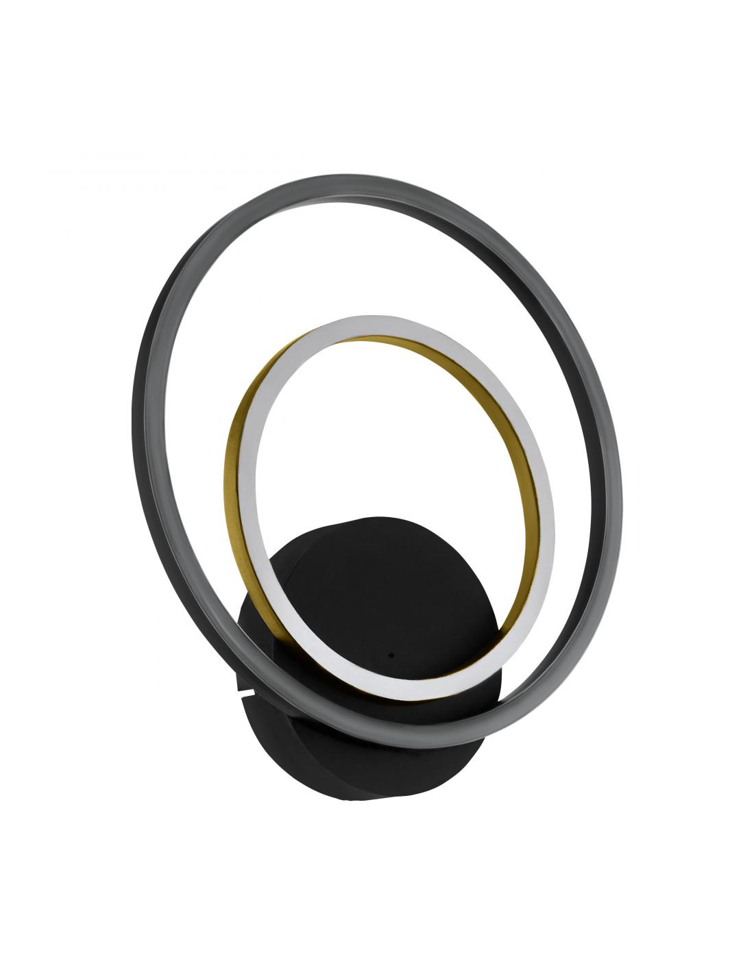 Minimalist LED wall light designed with a head in the shape of two aluminum circles, one larger black and another smaller gold color, with a black steel base. Its power of 12W makes this wall light emit 1700 lumens and 1200 lumens in its large and small leds, respectively. Ideal for lighting any room in a different way.