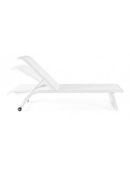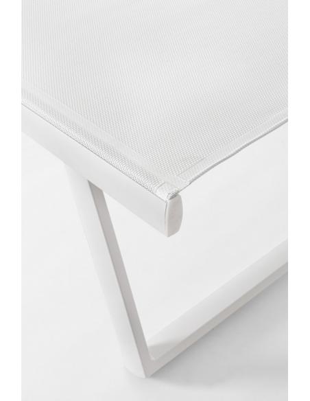 Aluminum structure, powder coated (polyester). Textilene seat and backrest 2x1 (610g/m2). Reclining backrest (4 positions). Galvanized steel screws. Plastic (pu) wheels to assemble.