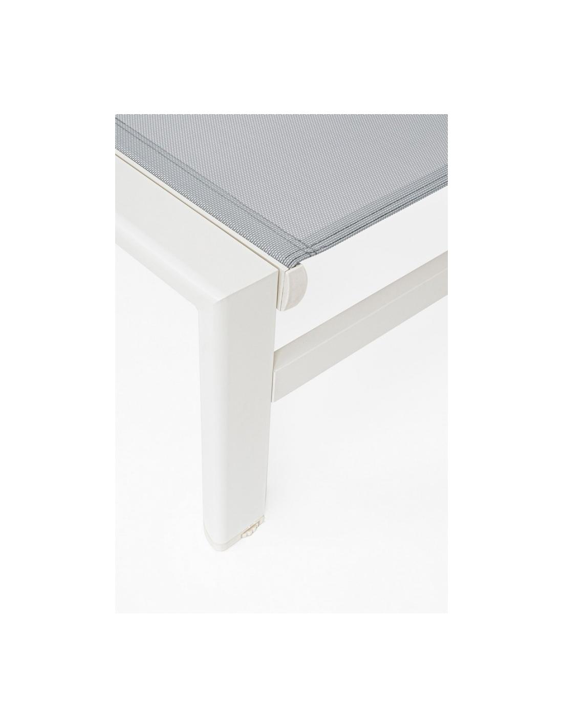 Aluminum structure, powder varnished (polyester). Seat and backrest covered in 1x1 textile. Reclining backrest (4 positions). Stainless steel screws. To assemble.