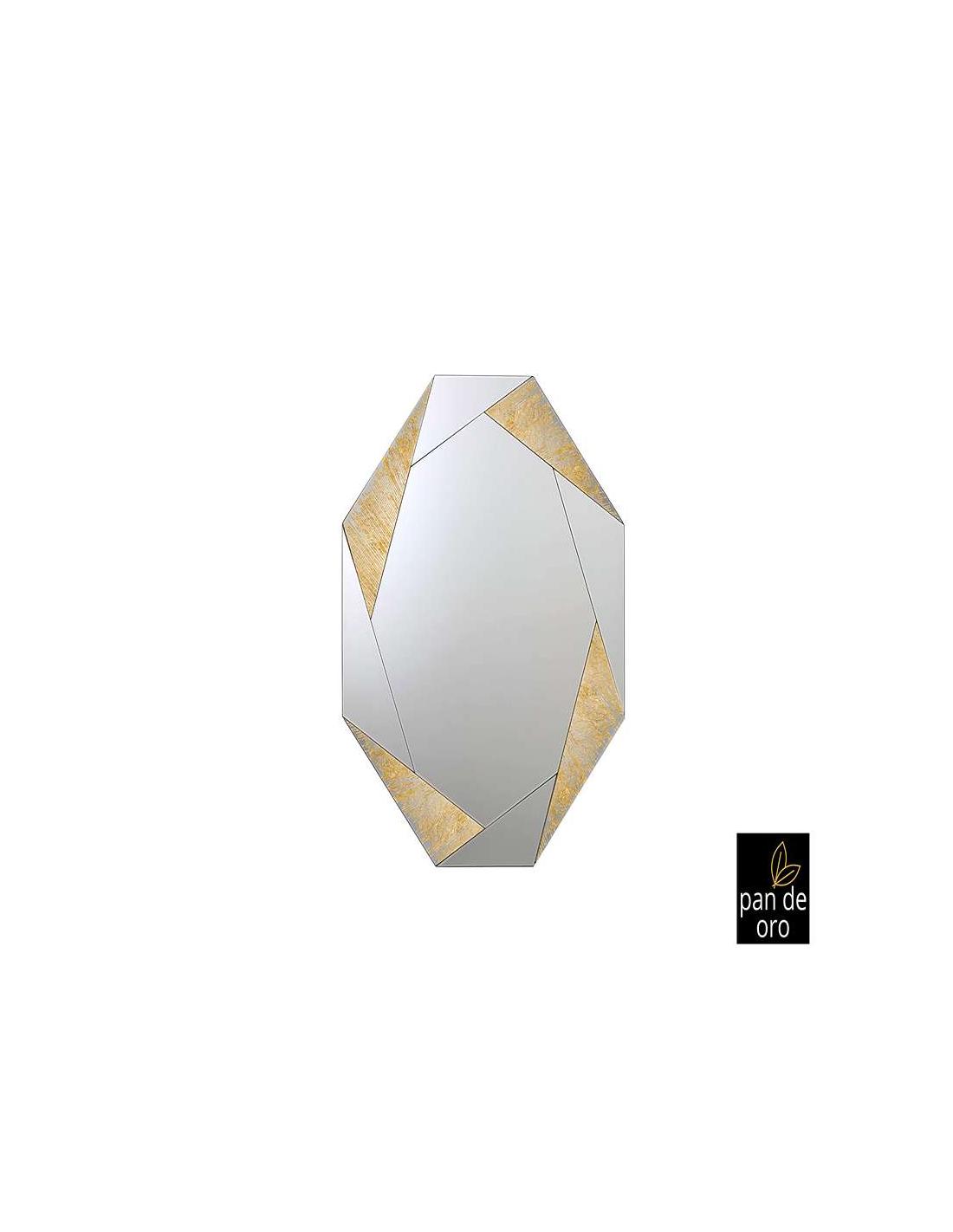 Mirror with beveled windows and GOLD LEAF graphics. Back in black lacquered MDF. Prepared to hang horizontally or vertically.