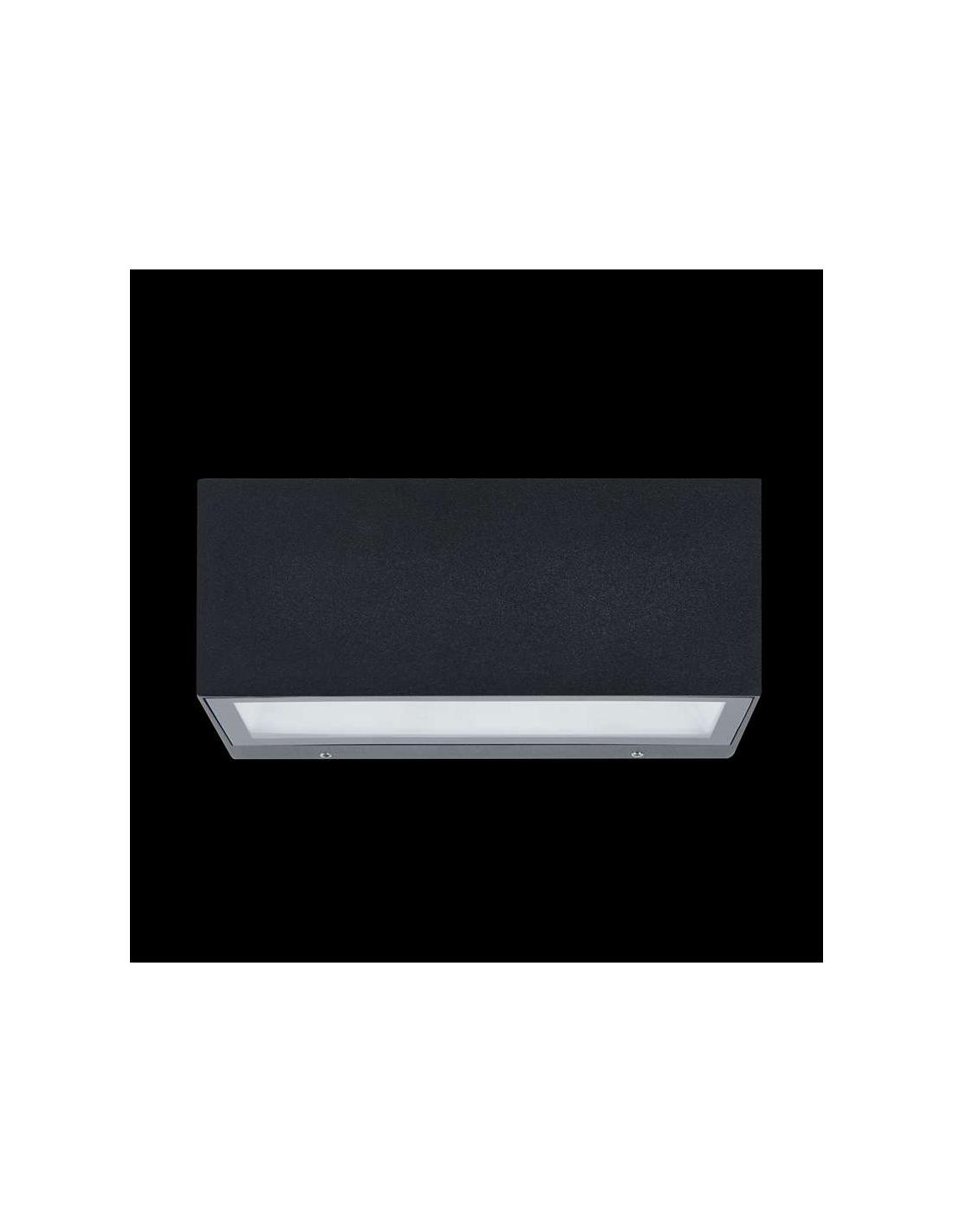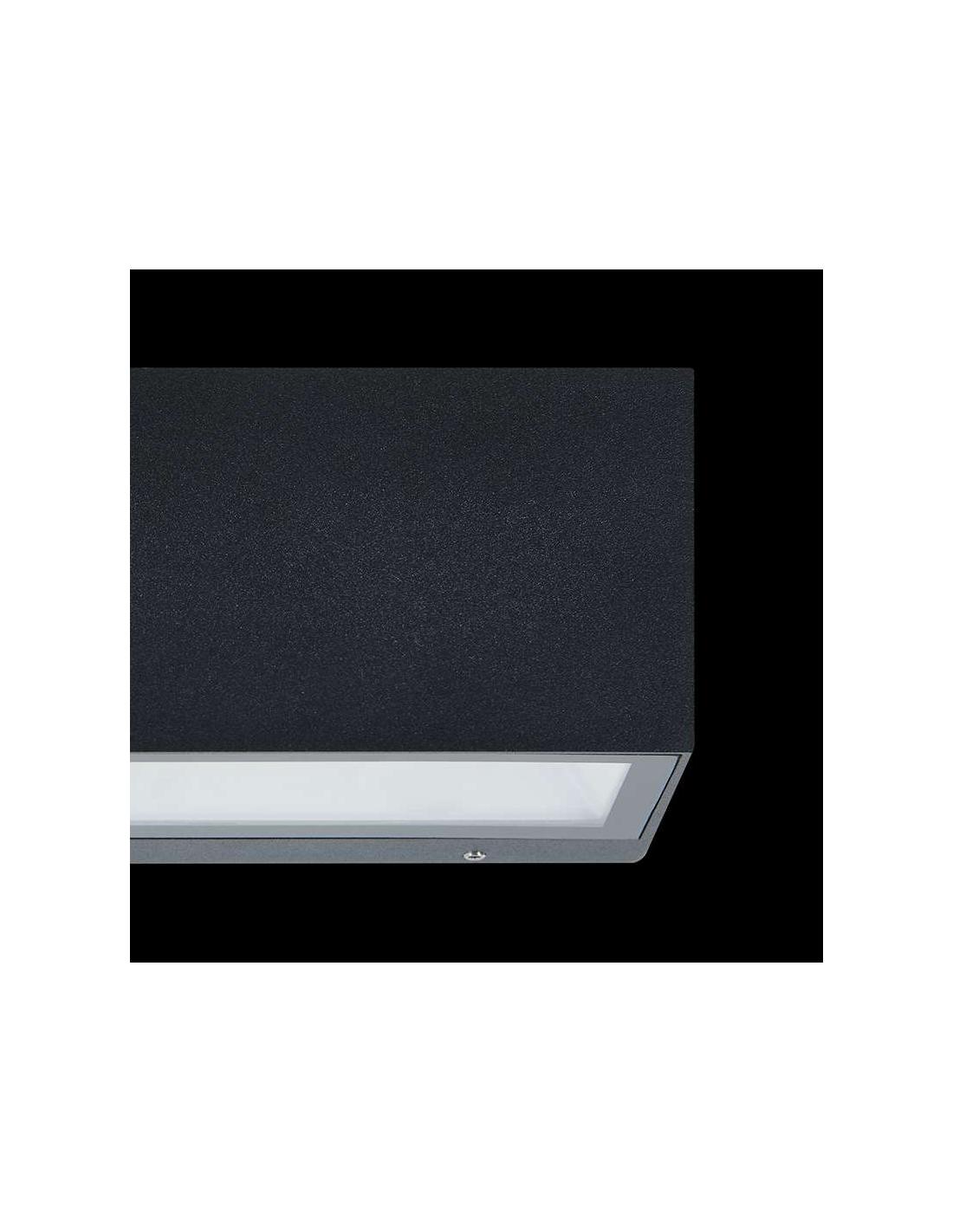 The Spongano LED outdoor wall lamp has a square aluminum housing, anthracite color and a transparent glass tone.