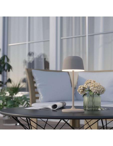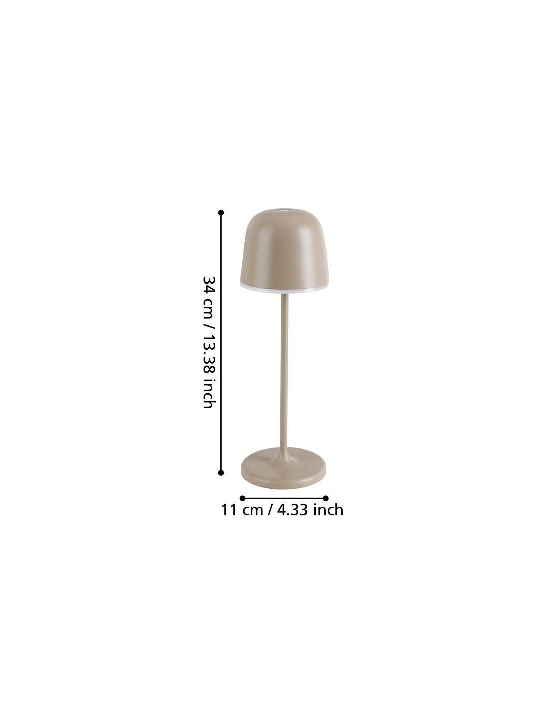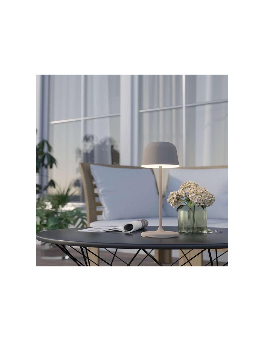 The MANNERA table lamp is made of cream-colored aluminum, combined with a white plastic surface. The integrated LEDs provide a white, warm and pleasant light. Thanks to its "touch-yo" touch system, integrated into the lampshade, the light can be turned on, off and dimmed. The built-in battery allows for practical and hassle-free lighting wherever you want and can be recharged with the help of a USB-C cable (not included). Thanks to its IP54, this lamp has a protection system against dust and water, allowing its use outdoors. Thanks to the timeless and homely design, it fits every modern style area, whether on the terrace, balcony, or inside the house.