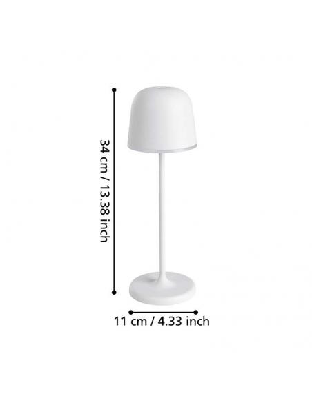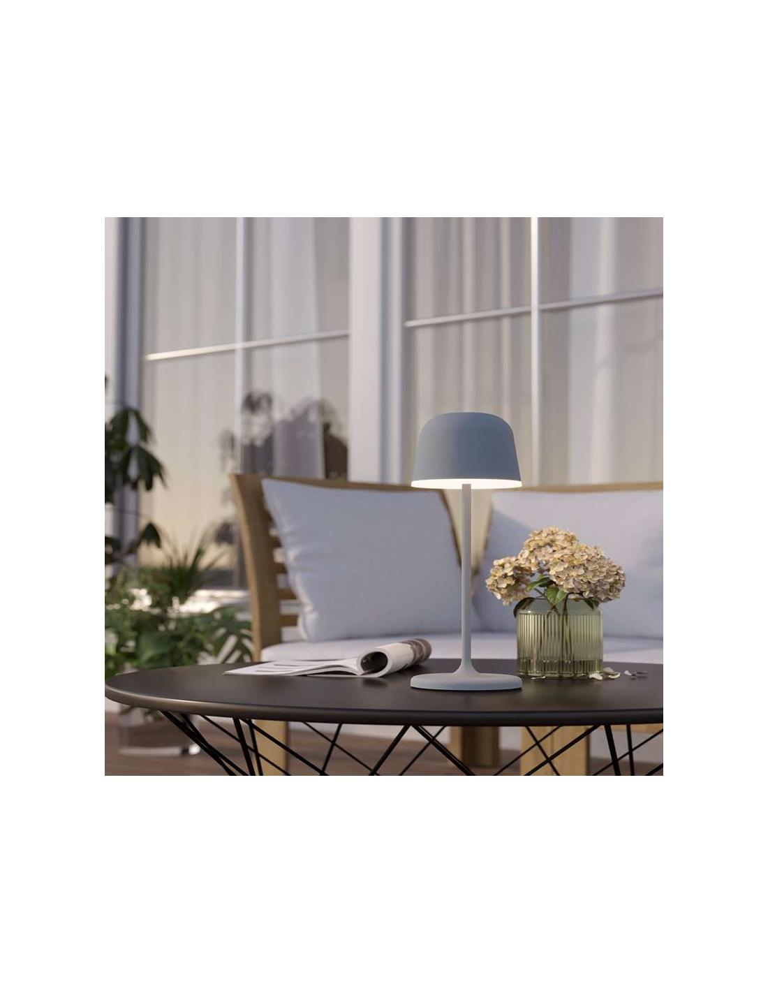 The MANNERA table lamp is made of gray aluminum, combined with a white plastic surface. The integrated LEDs provide a white, warm and pleasant light. Thanks to its "touch-yo" touch system, integrated into the lampshade, the light can be turned on, off and dimmed. The built-in battery allows for practical and hassle-free lighting wherever you want and can be recharged with the help of a USB-C cable (not included). Thanks to its IP54, this lamp has a protection system against dust and water, allowing its use outdoors. Thanks to the timeless and homely design, it fits every modern style area, whether on the terrace, balcony, or inside the house.