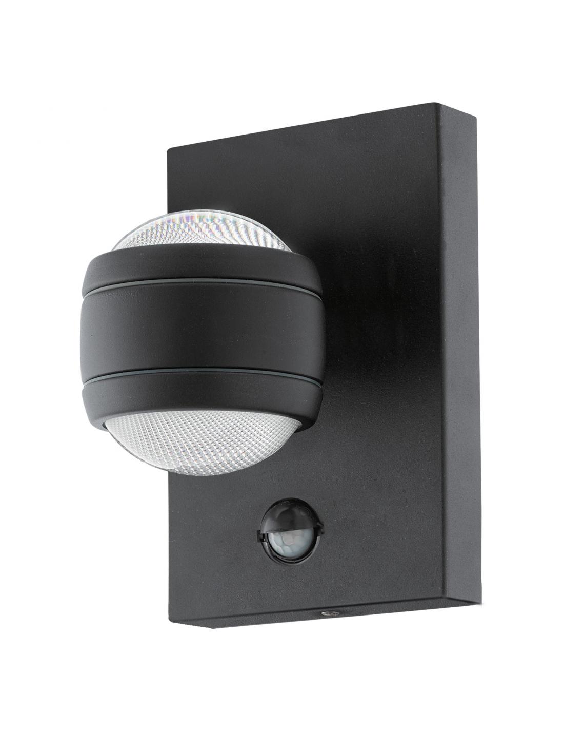 The SESIMBA 1 Lamp is a sensational outdoor wall light with motion sensor, made by EGLO, in black galvanized steel and light color Acrylic. INTEGRATED LED.