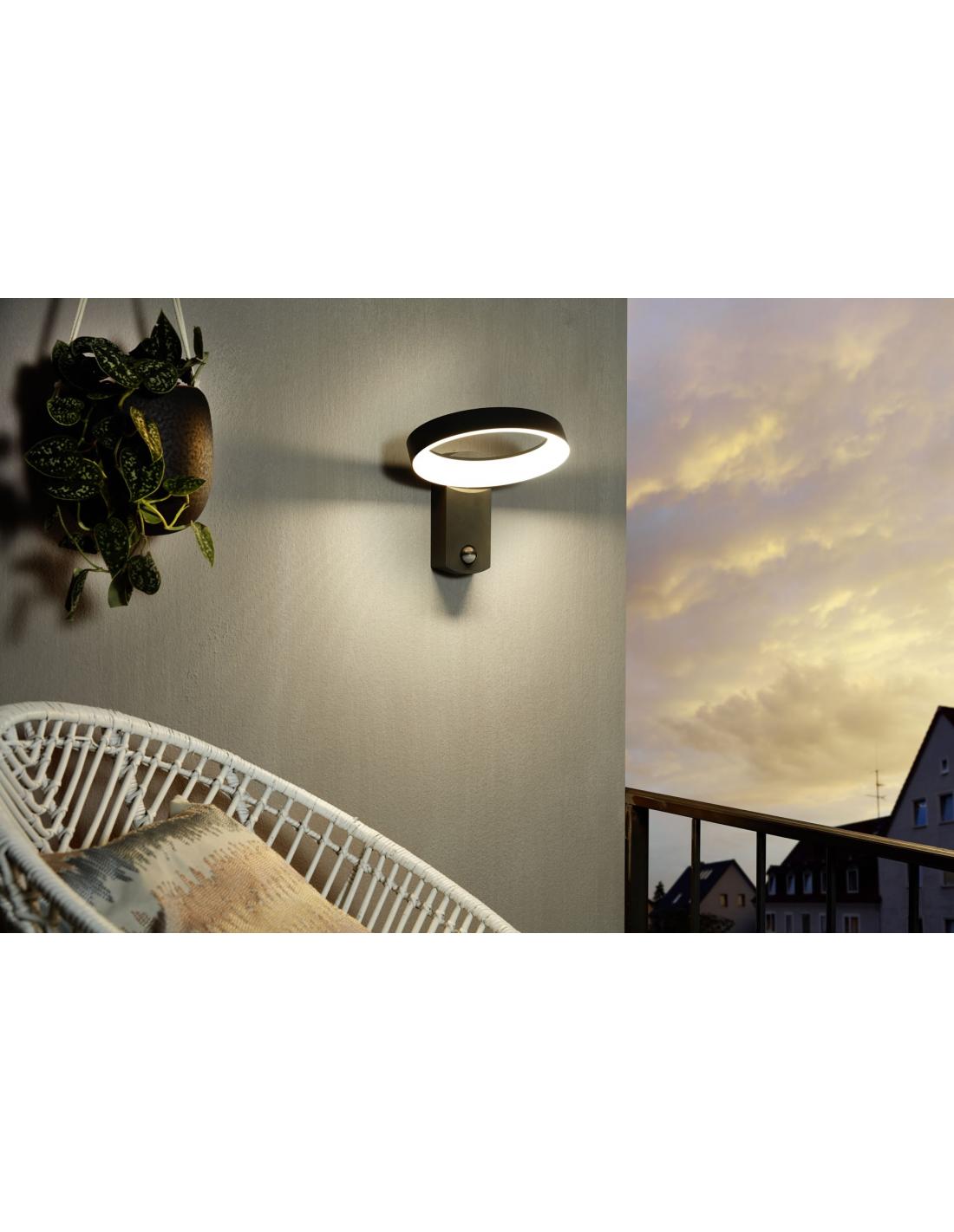The PERNATE Lamp is a spectacular outdoor wall light with motion sensor, made by EGLO, in anthracite cast aluminum and white Acrylic. INTEGRATED LED.