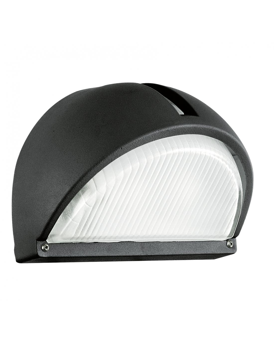 The ONJA lamp is a sturdy outdoor wall light, manufactured by EGLO, with an IP44 protection degree made of black cast aluminum and ribbed glass. It uses an E27 bulb, not included.