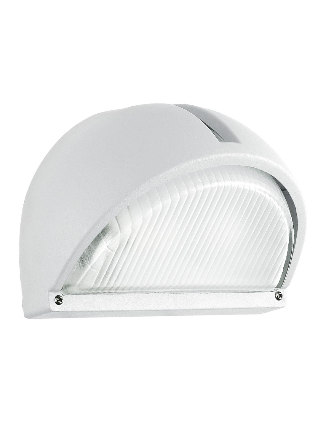 Outdoor wall light with white cast aluminum with glass shade, which uses an E27 bulb. Perfect for illuminating passageways and poorly lit areas.