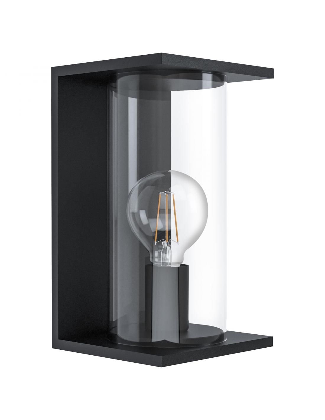 The CASCINETTA Lamp is a unique outdoor wall lamp, made by EGLO, in black galvanized steel and clear glass. Requires E27 bulbs, NOT INCLUDED.