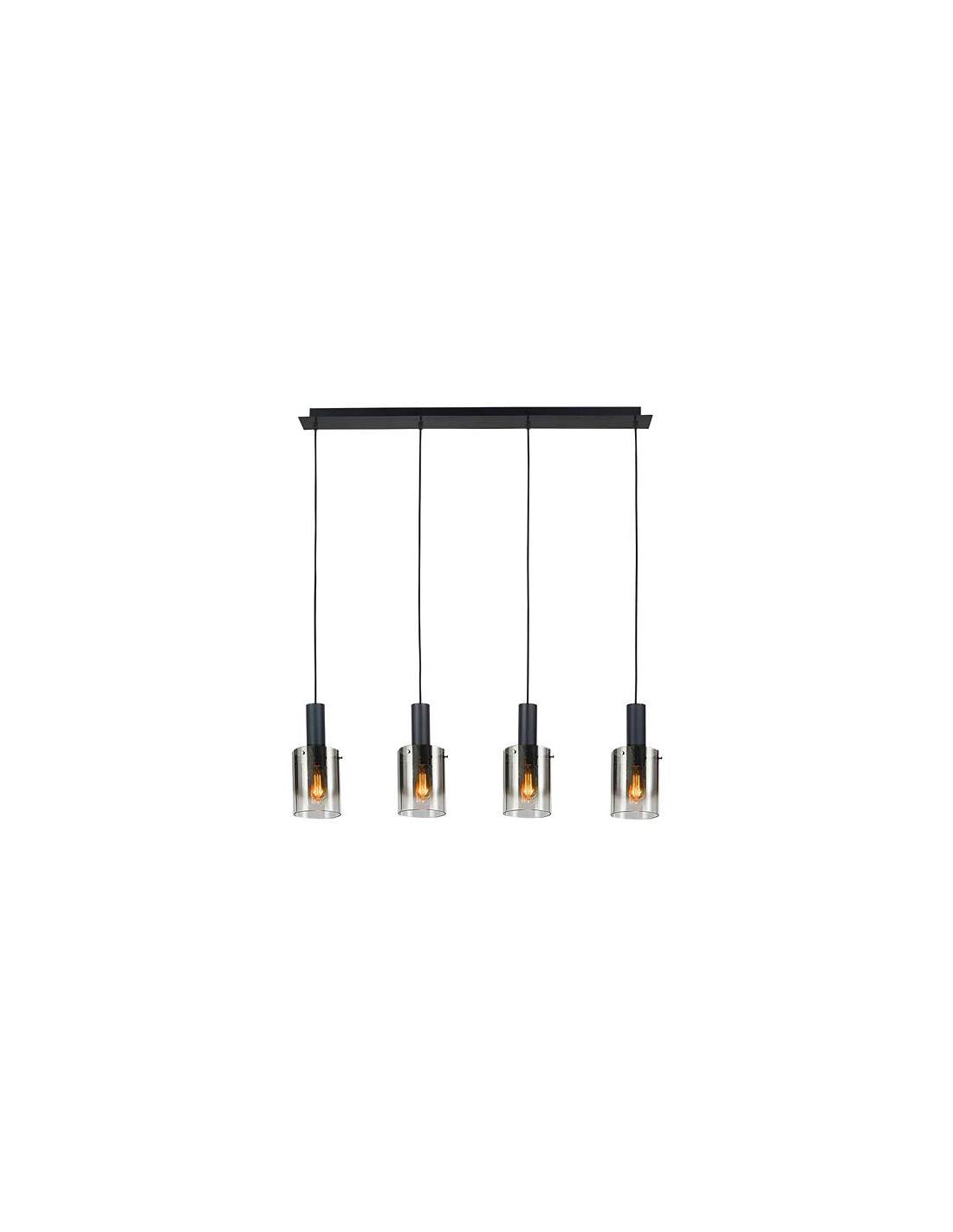Lamp made of satin black finished metal. 4 Smoked glass tulips. Textile cable. Adjustable in height. E27 lamp holder