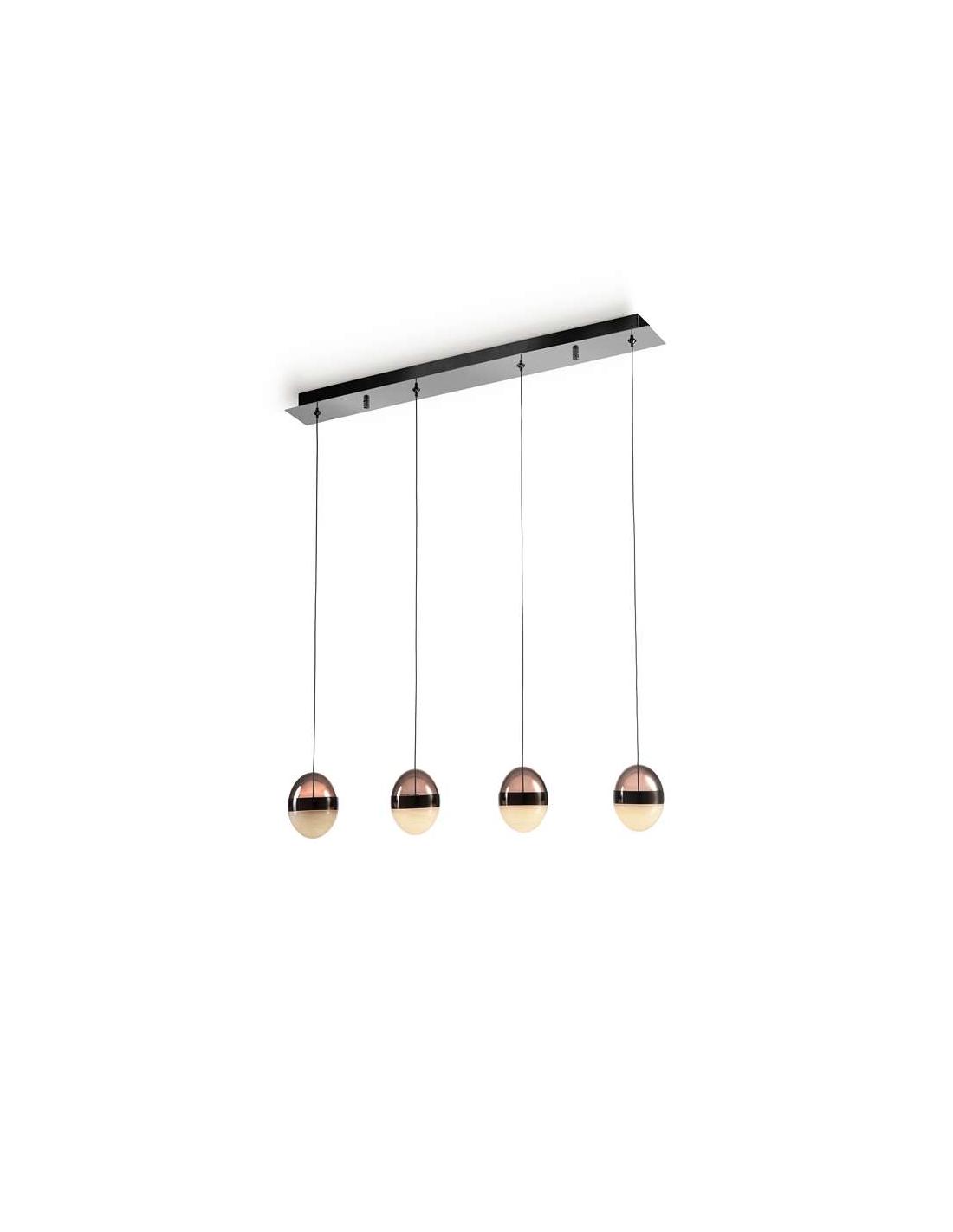 4-light LED lamp, made of metal finished in black. Tulips Ø12 cm, made of smoked polycarbonate and marbled glass. With black chrome finish metal rings. DIMMABLE. 29W LED. 3,000K. 1,304 lm.