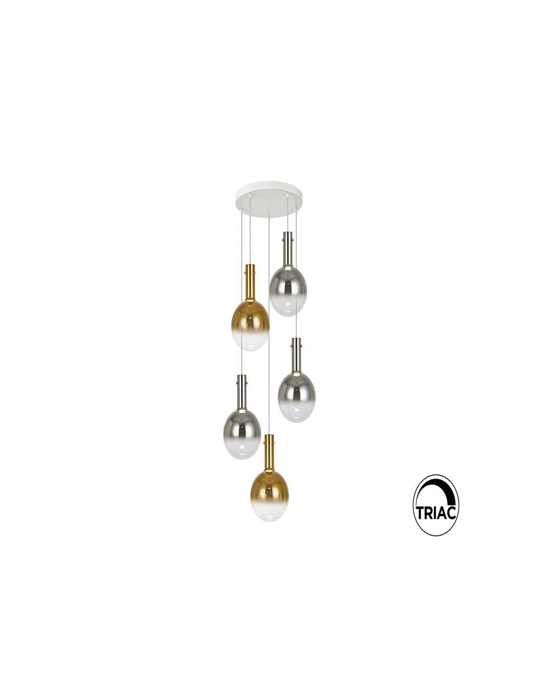 Lamp made of metal, matte white finish. Blown glass tulips of Ø20 cm, mirrored smoke gray and mirrored gold. Adjustable in height. 30W LED, 2408 lm, 3000K.