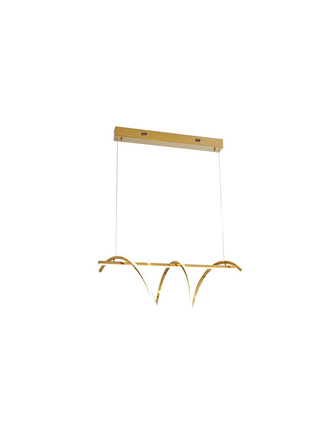 Lamp made of stainless steel with a shiny gold finish. Opal silicone diffuser. Adjustable height. 63W LED, 4,460lm, 3,000K. DIMMABLE.