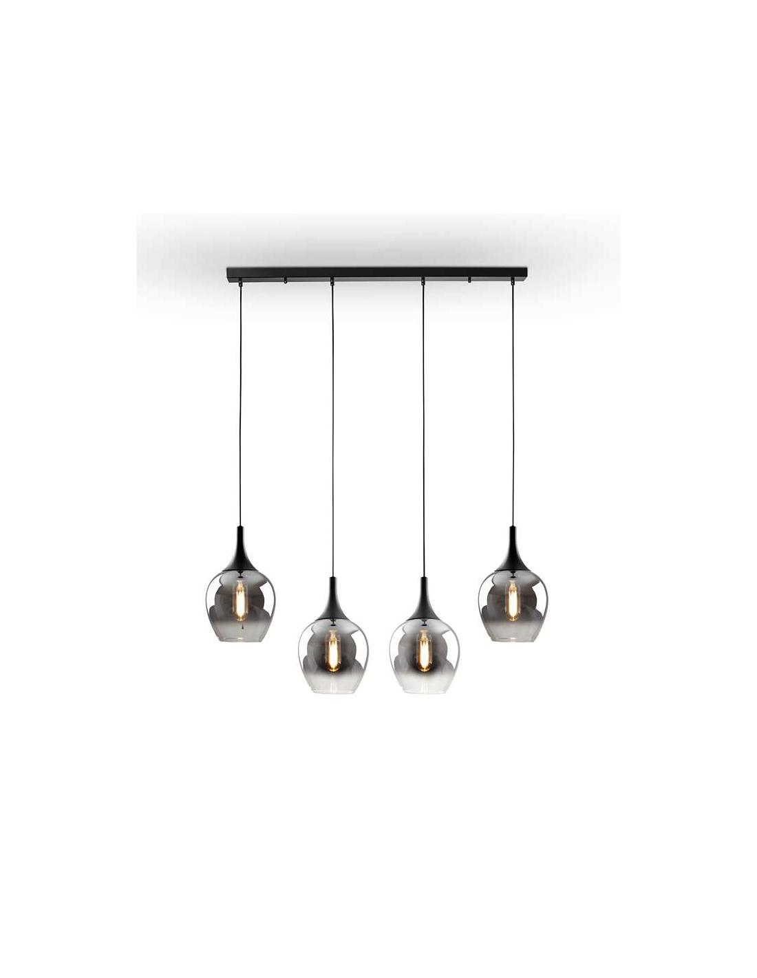 4-light lamp, made of matte black finished metal. Ø19 cm molded glass smoke-gradient tulips. Adjustable in height.