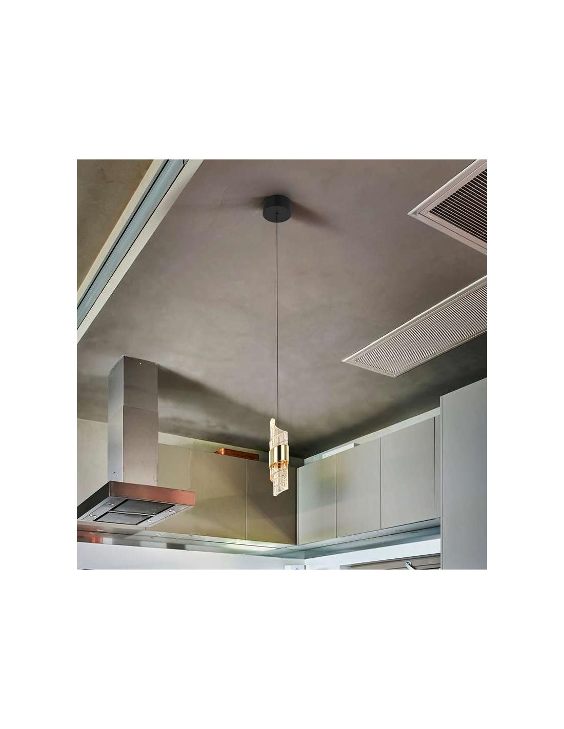 1 LED light lamp. Made of matte black and shiny gold finished metal. Tulip with spiral design, made of molded and carved acrylic. Adjustable in height. 7W LED. 656 lm. 3,000 K.