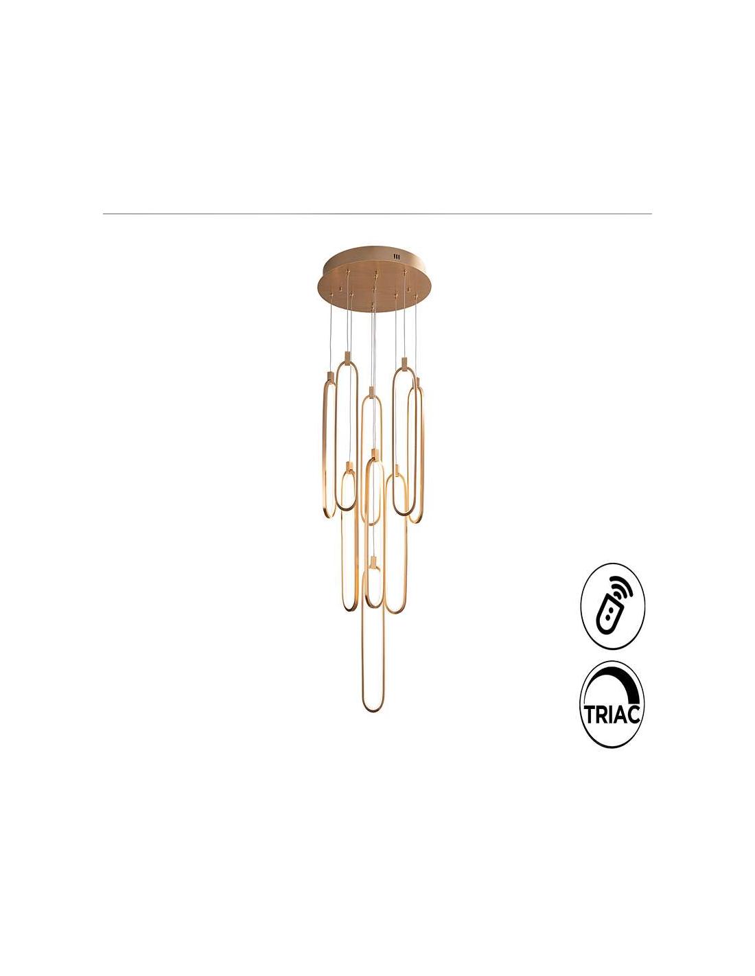 14-light LED lamp, made of brushed aluminum, rose gold finish. Opal silicone diffusers. Adjustable in height. 182W LED, 16,380 lm, 3,000 K. Includes TRIAC driver and DIMMED SET.