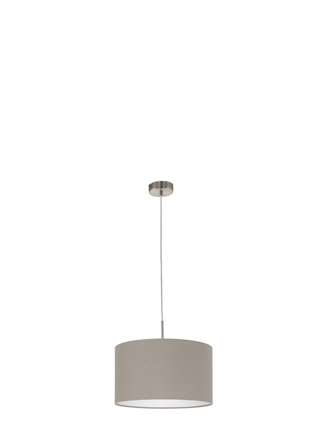 PASTERI Fabric Pendant Lamp. Excellent choice of lamp for the living room, made by EGLO, in Gray steel and Textile in grayish brown. Requires E27 bulbs, NOT INCLUDED.