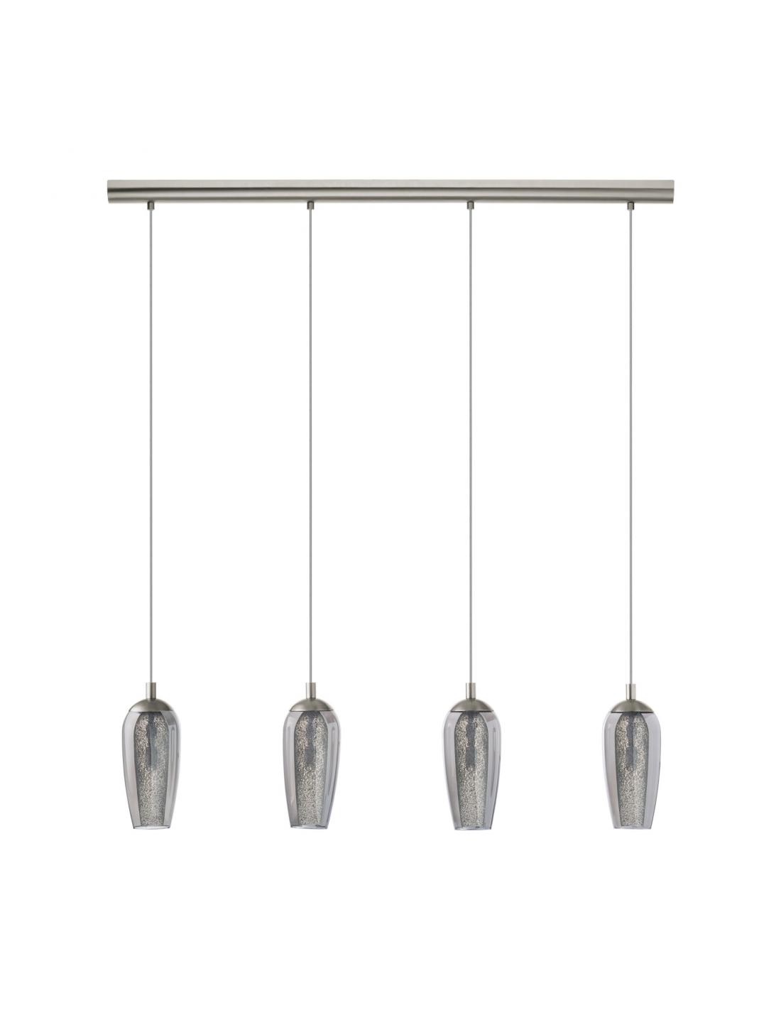 Reference EGLO 96344 is a pendant led lamp from the FARSALA Collection with the following technical characteristics 4X3W 220-240V,50/60Hz. It is characterized by the use of materials in Steel as the main part and Tinted glass, Granille for the screen. Combine colors such as Gray in the lamp and black-transparent, clear for the shade. Requires 4 G9 socket bulbs (included). The manufacturer of this collection is EGLO, prestigious marca that stands out for the quality of its designs and for being a world leader in lighting.