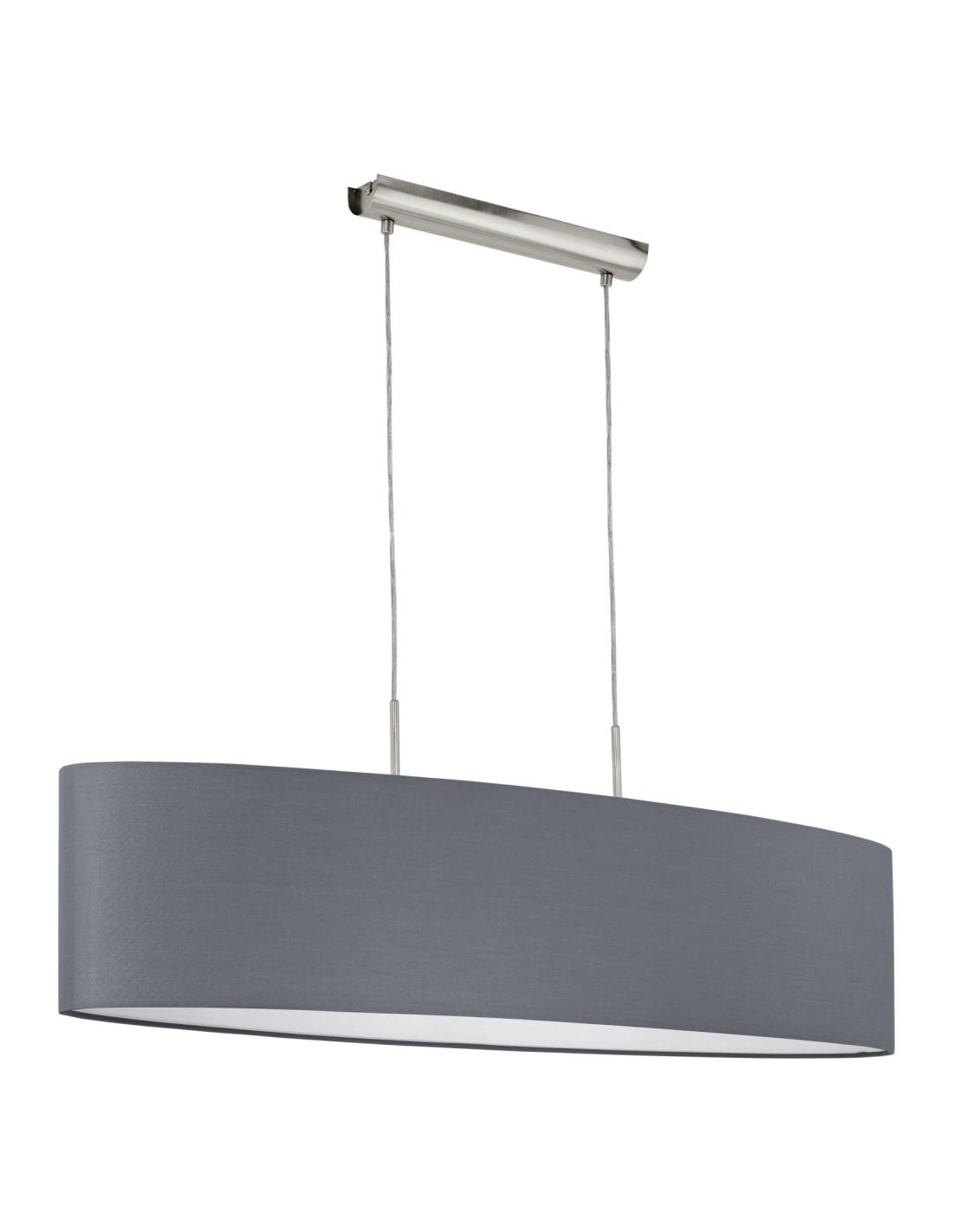 2X60W 220-240V,50/60Hz. It is characterized by the use of steel materials as the main part and textile for the screen. Combine colors such as Gray in the lamp and gray for the shade. Requires 2