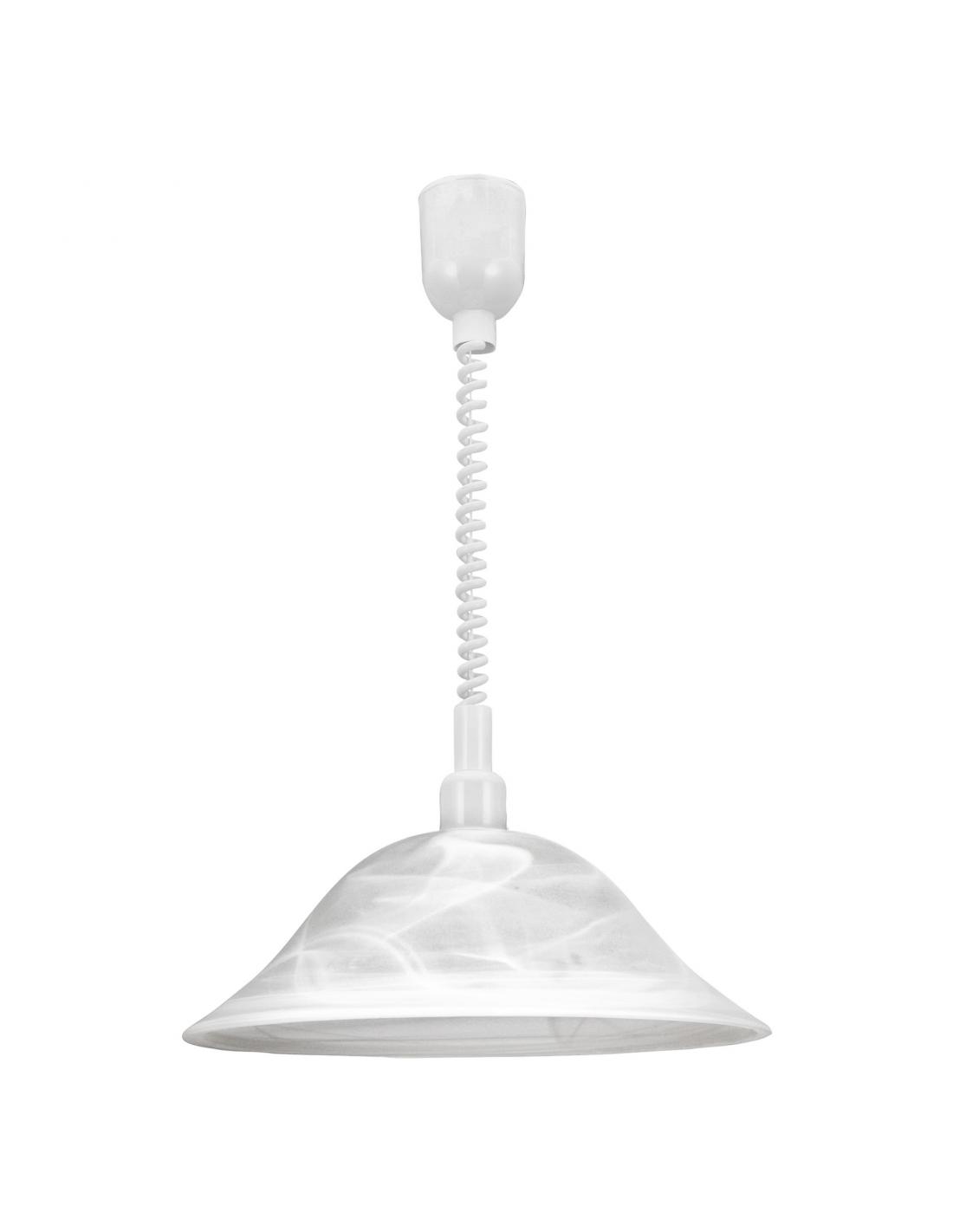 Classic style pendant lamp. Shade made of alabaster glass and acrylic rosette. Adjustable height. Uses E27 bulb, NOT INCLUDED.