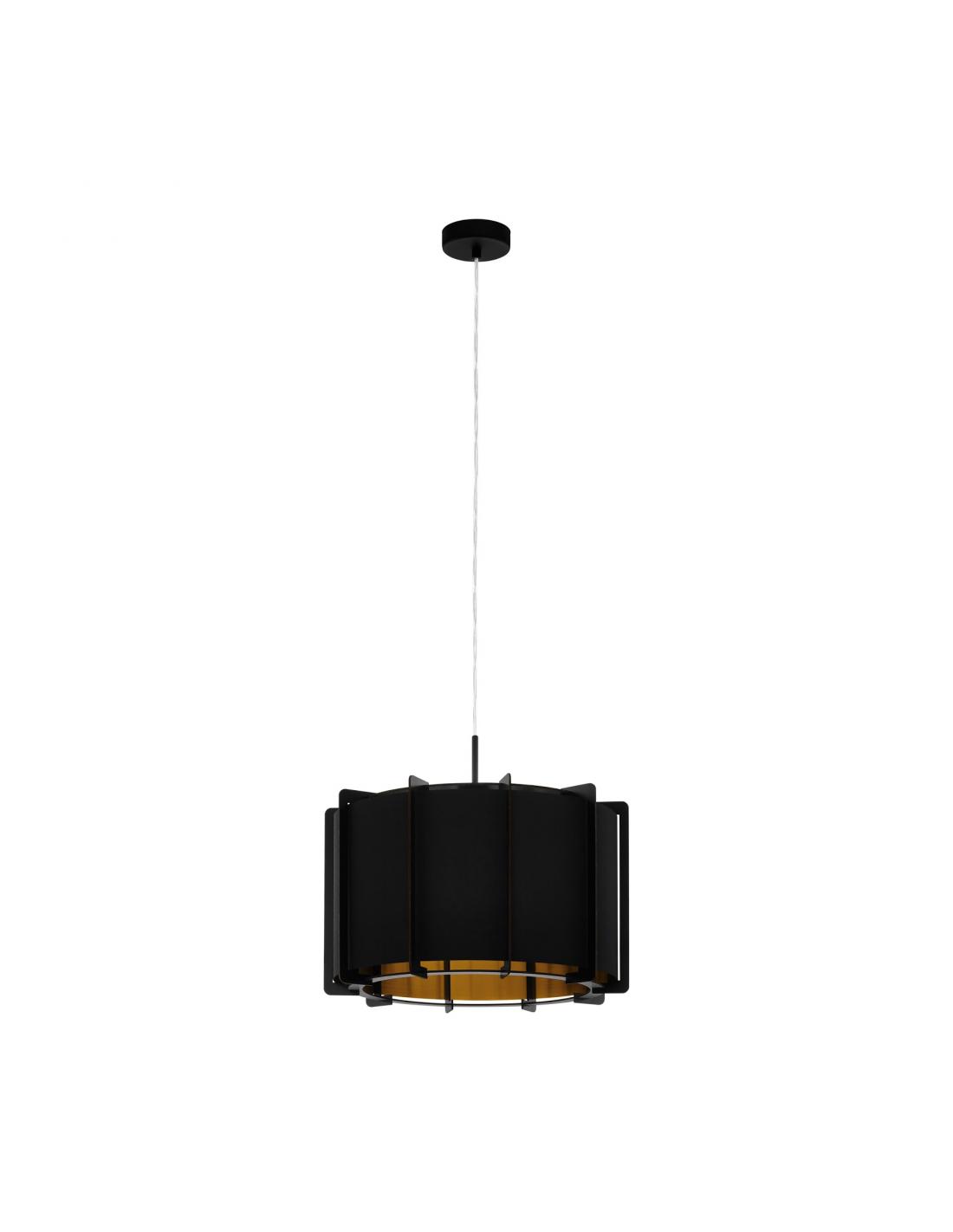 Pineta Wooden Pendant Lamp. Excellent choice for Living room lamp, made by EGLO, in Black Steel and Wood, black foil, gold. Requires E27 bulbs, NOT INCLUDED.