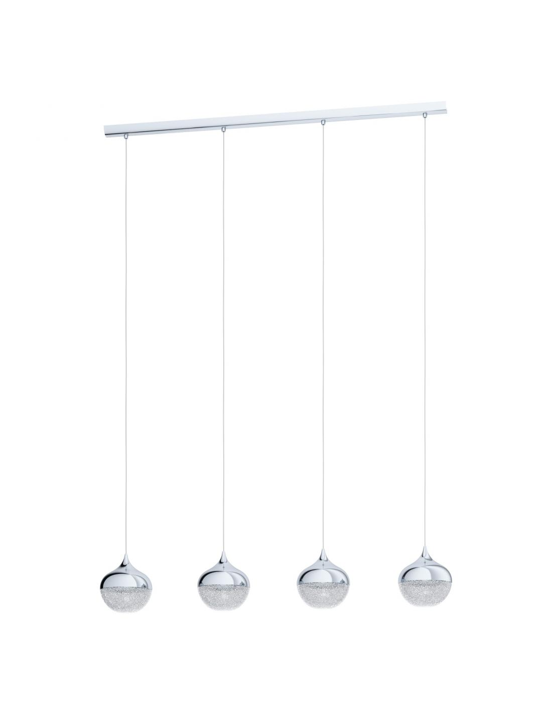 4X25W 220-240V,50/60Hz. It is characterized by the use of Steel materials as the main part and Acrylic for the screen. Combine colors such as Metallic in the lamp and white, clear granille for the shade. Requires 4