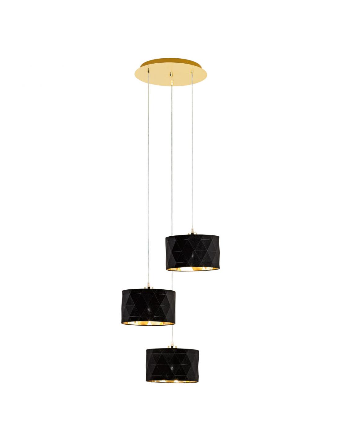 3X60W 220-240V,50/60Hz. It is characterized by the use of steel materials as the main part and textile for the screen. Combine colors such as Gold in the lamp and black, gold for the lampshade. Requires 3