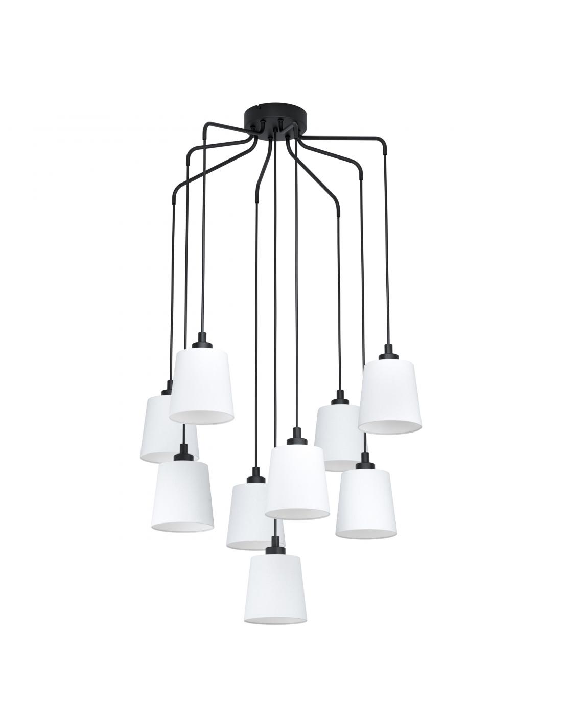 9X40W 220-240V,50/60Hz. It is characterized by the use of steel materials as the main part and textile for the screen. Combines colors such as black in the lamp and white for the lampshadeRequires 9