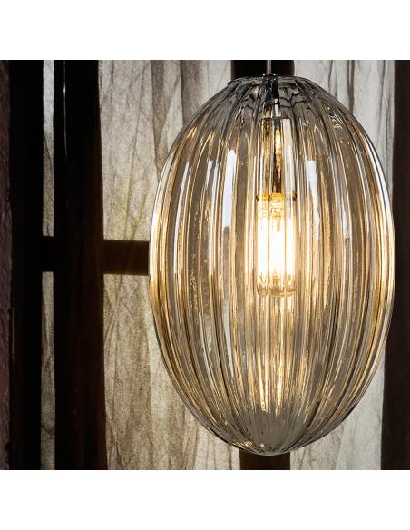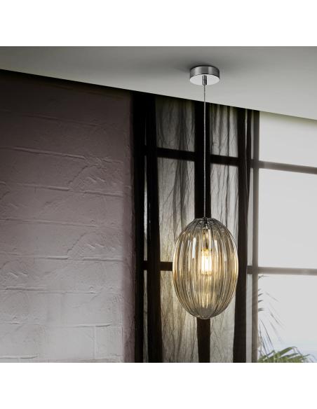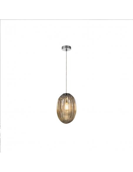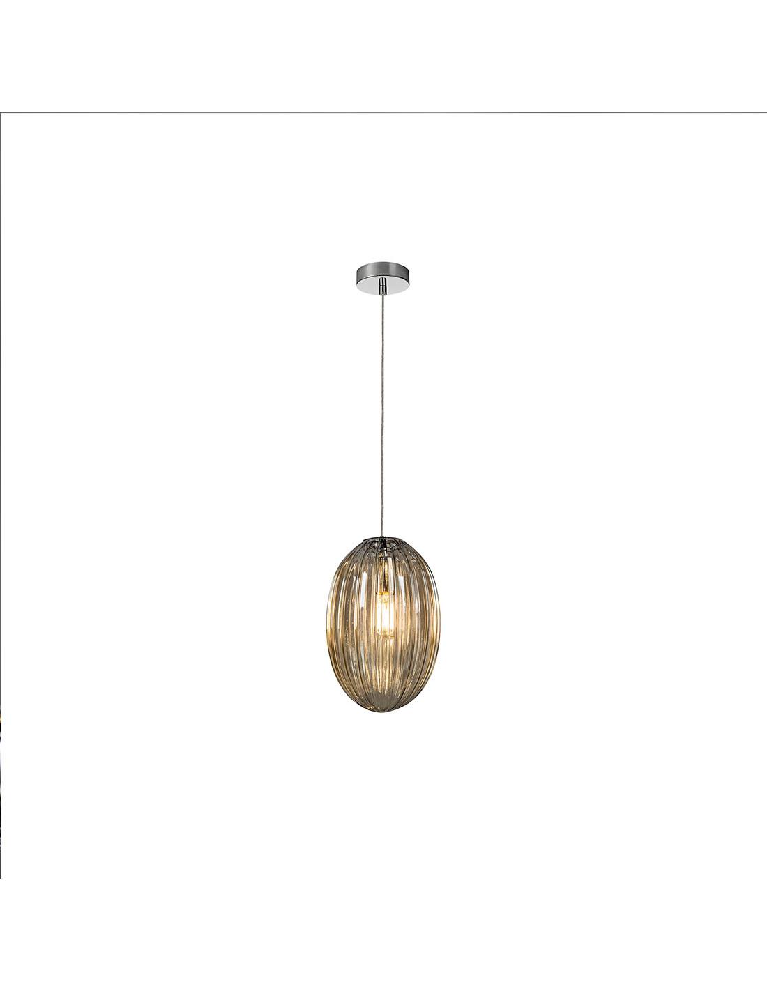 1 light lamp, made of chrome finished metal. Small cognac-tone glass tulip. Adjustable in height. ·Includes 1 E27 LED 8W. DIMMABLE