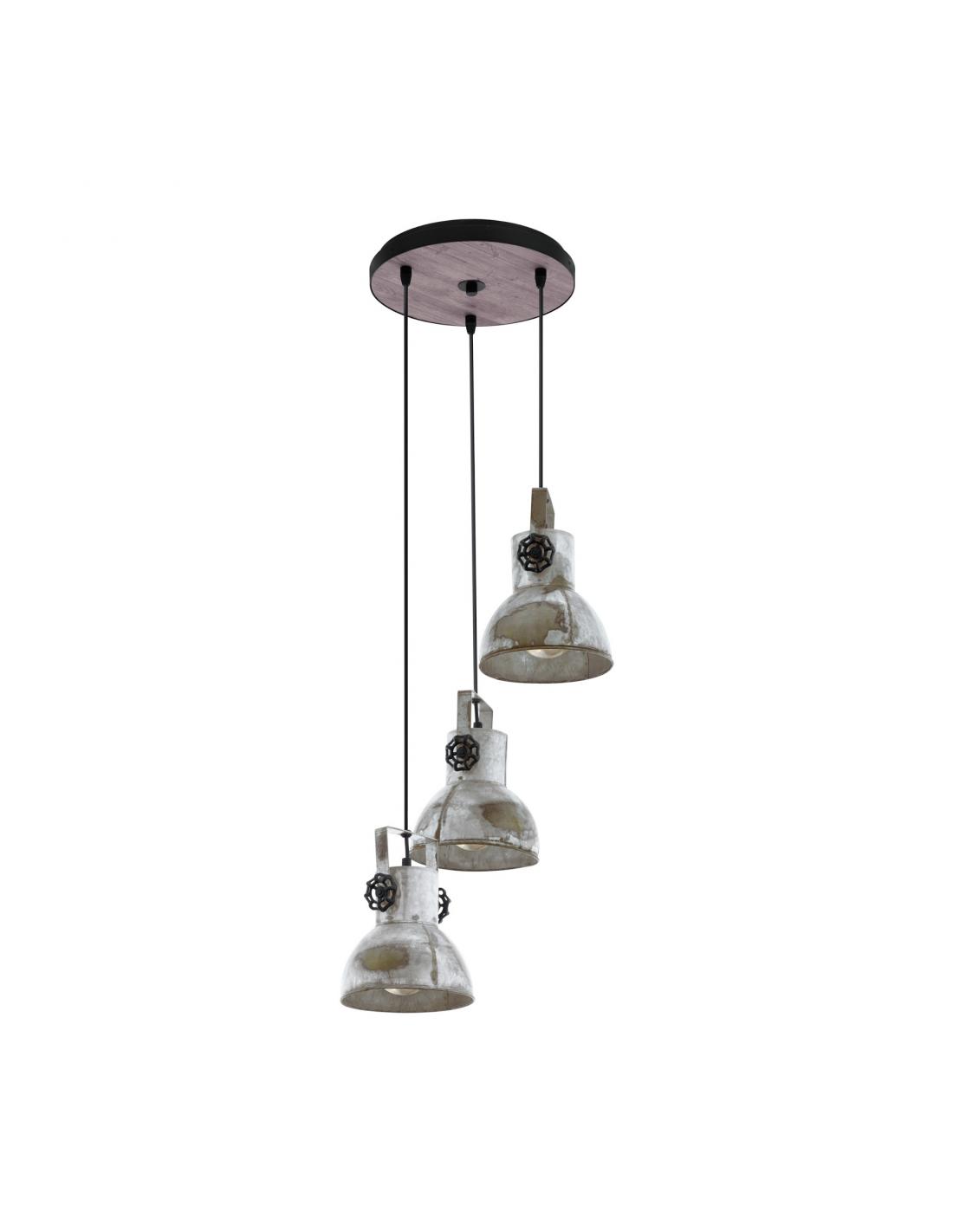 3X40W 220-240V,50/60Hz. It is characterized by the use of materials in Wood, steel as the main part and Steel for the screen. It combines colors such as Brown in the lamp and zinc effect used for the lampshade. Requires 3