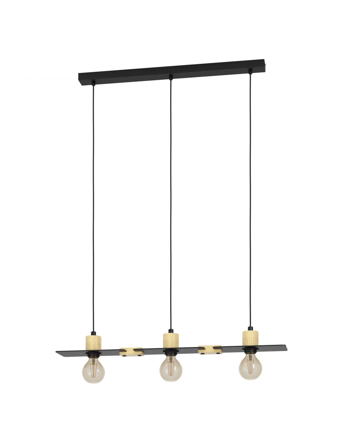 Bramerton 3-light pendant lamp steel and wood - EGLO