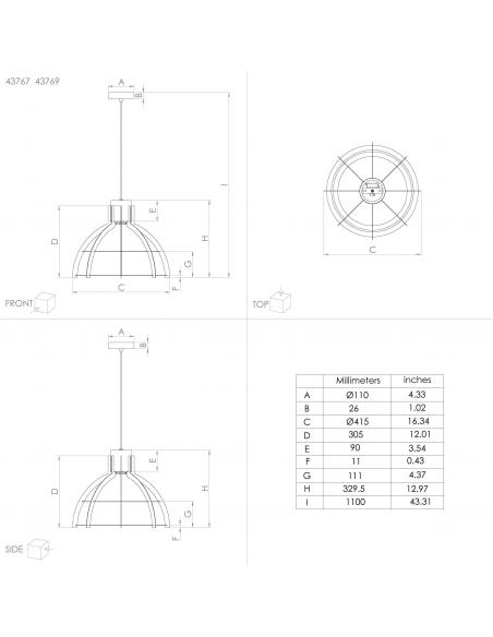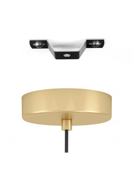 Unique pendant lamp with a totally different design from the usual. Its structure of gold-colored steel rods are arranged on two circular rings of the same material and color to finally end in a contrasting base in black, of the same resistant material. Its black lamp holder emerges from inside the shade, where we recommend the use of a vintage E27 socket bulb (not included) for optimal use of the piece. The shade is suspended from a black height-adjustable cable, installed on a golden steel base.