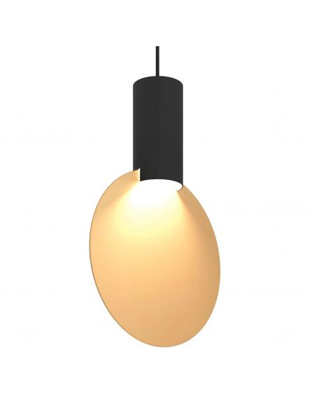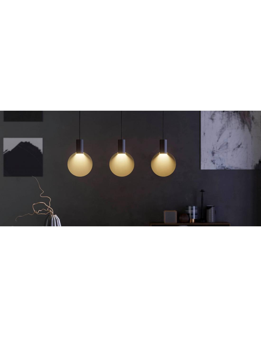 Modern but elegant three-light pendant lamp with simple and discreet lines, in black both at its base and wiring and tube-shaped caps/tulips, which end in flat circles of the same material as the rest of the lamp, steel, with a gold finish, that will create a very beautiful and distinguished effect on the light when you have it on. In addition, its three lights are from GU10 bulbs, included, in a cozy warm neutral color. Height-adjustable cables.