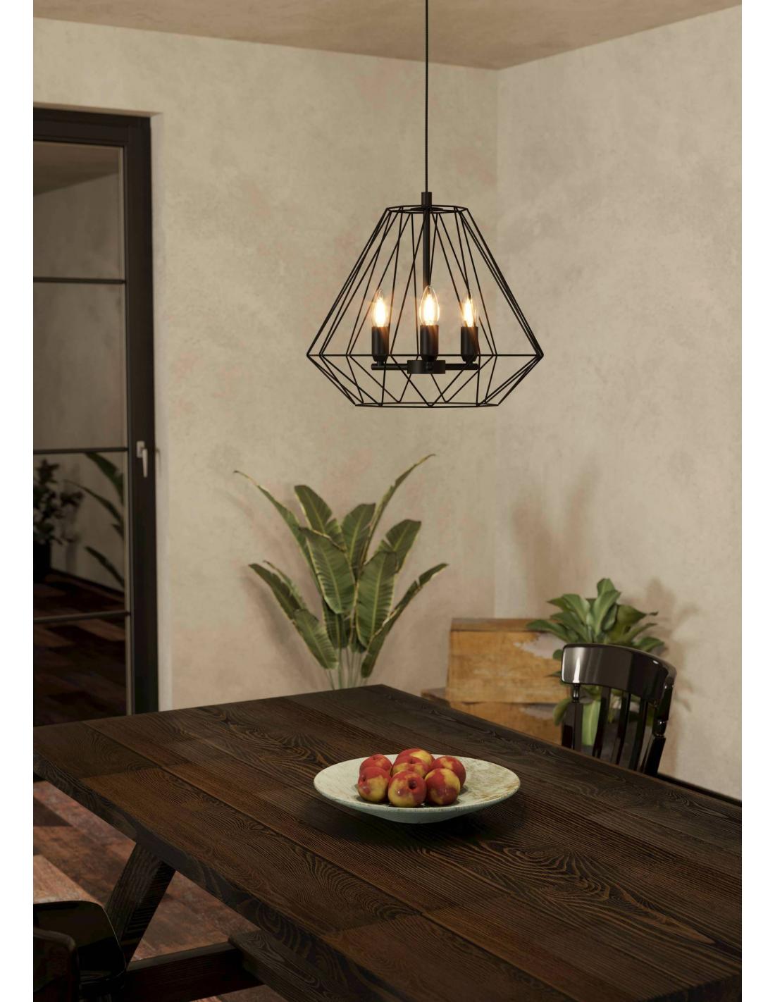 3-light hanging lamp black steel - EGLO Tarle