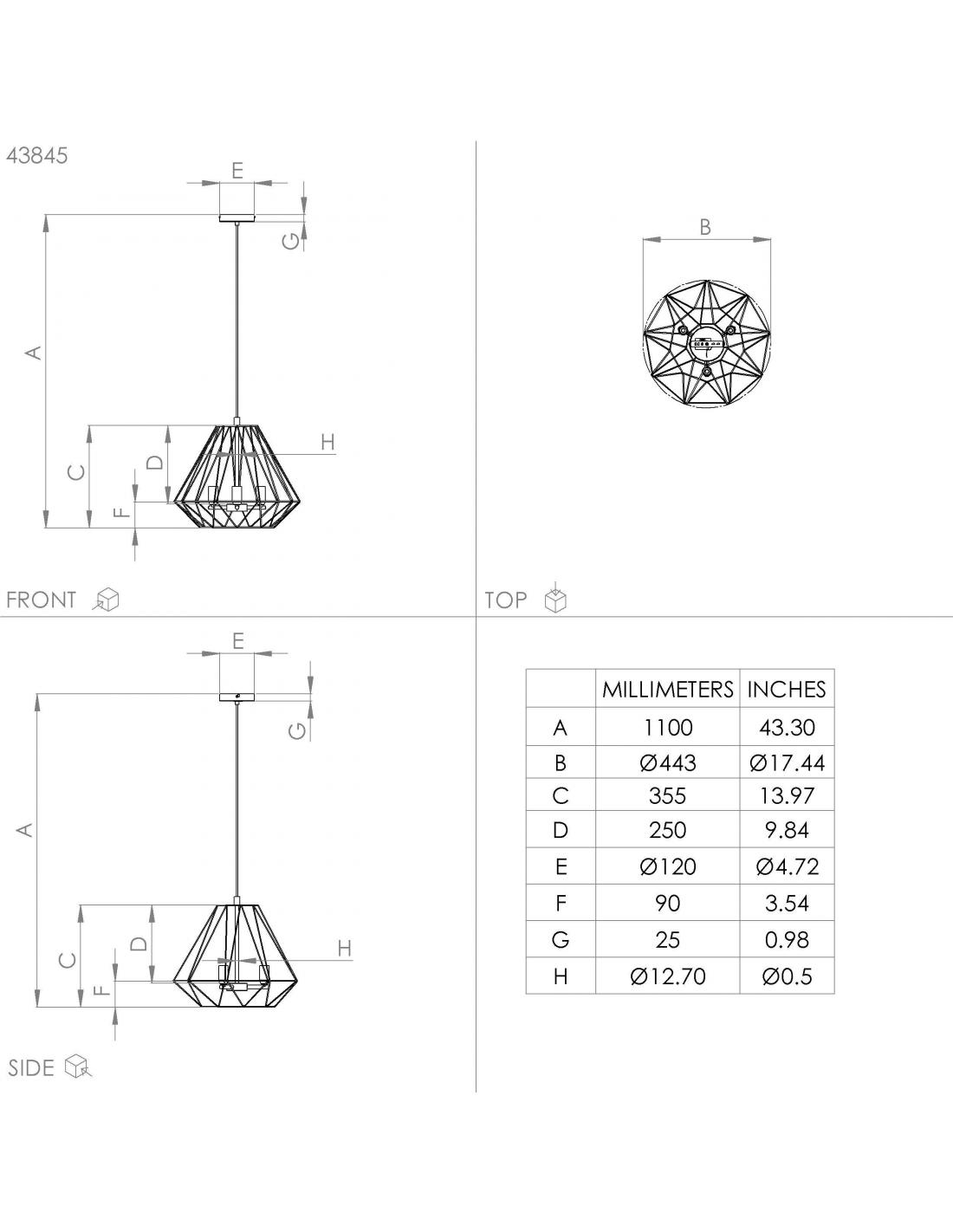Three-light pendant lamp made of steel with classic interior aesthetics, reminiscent of the lamps of medieval castles, but with a very renewed air thanks to its cage format shade in the same color with a multitude of thin rods covering the piece, which will give a very special touch when emitting light in the room. You need 3 E14 socket bulbs, not included, and we recommend that they be in candle format.