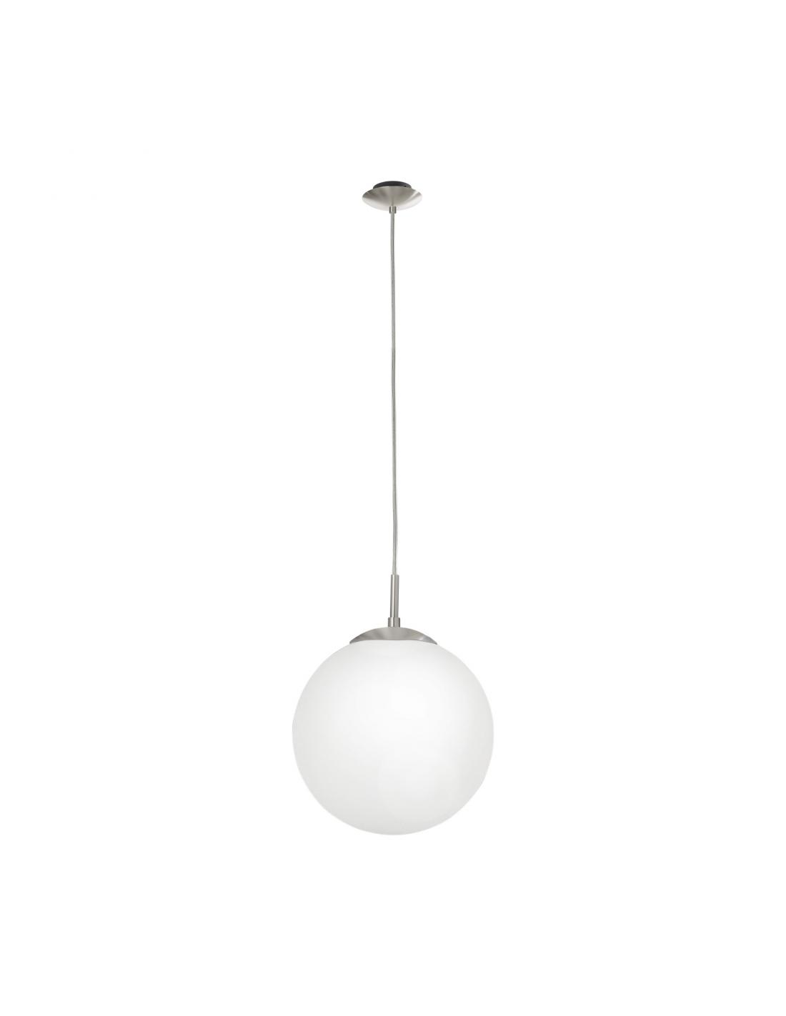 Rondo pendant lamp with 25 cm diameter glass shade suspended on a base that holds the matte nickel shade matching its rosette. Height adjustable wiring. Simple and versatile, made by EGLO. Requires an E27 bulb, not included.