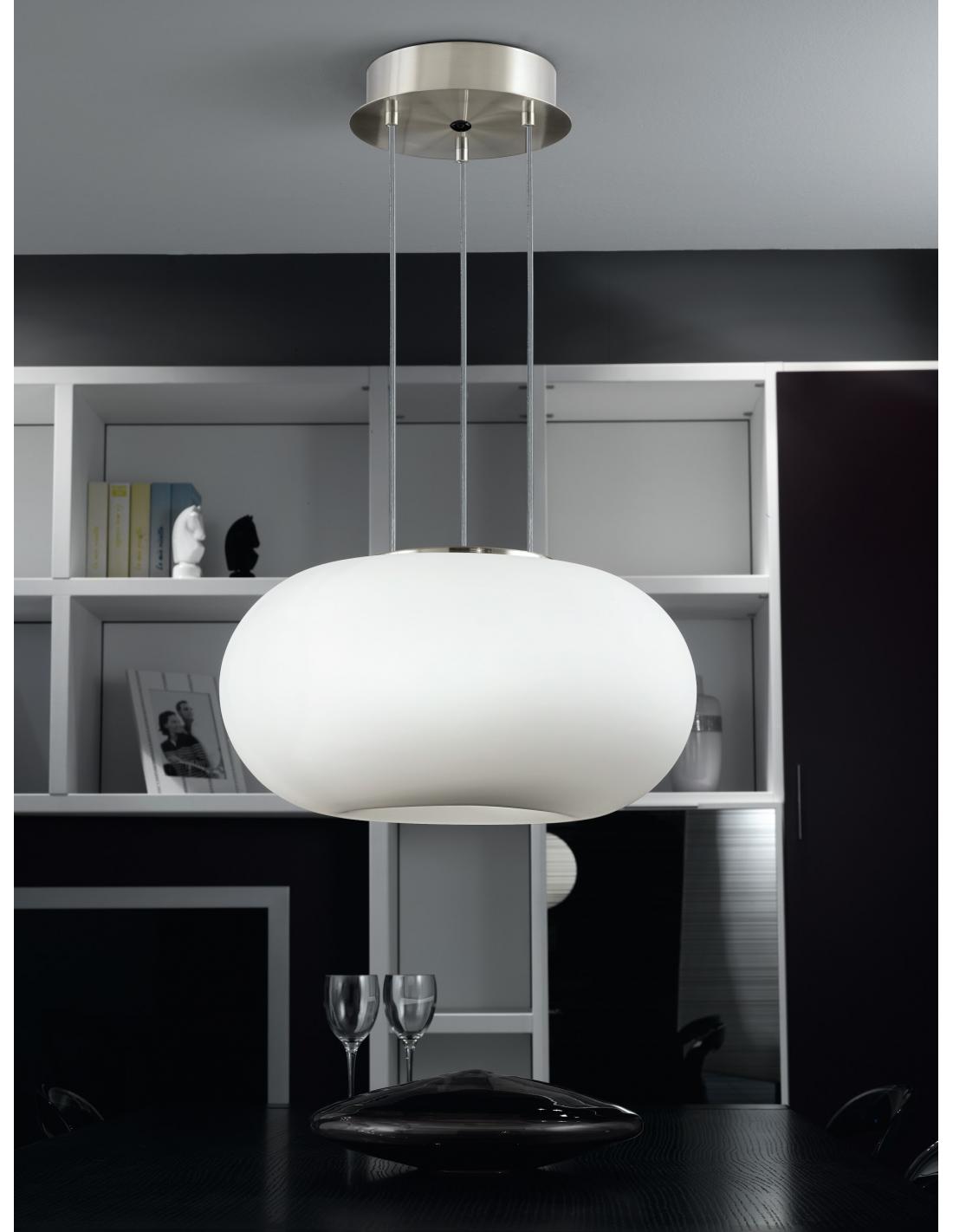 Crystal Pendant Lamp OPTICA. Fabulous for Living room lamp, made by EGLO, in Gray Steel and matte opal glass in white. Requires E27 bulbs, NOT INCLUDED.