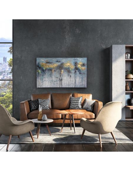 ·AQUAS· Acrylic painting with gold details, mounted on a frame.