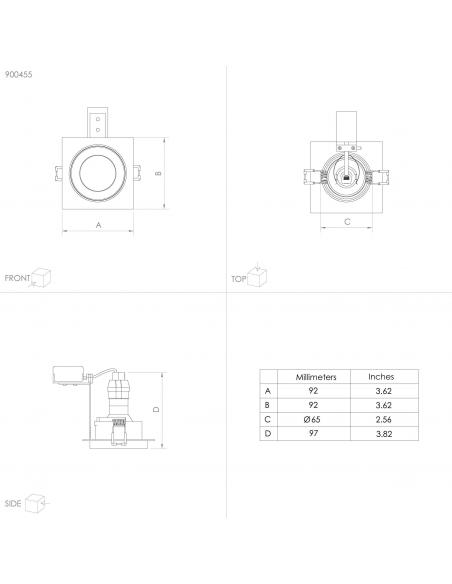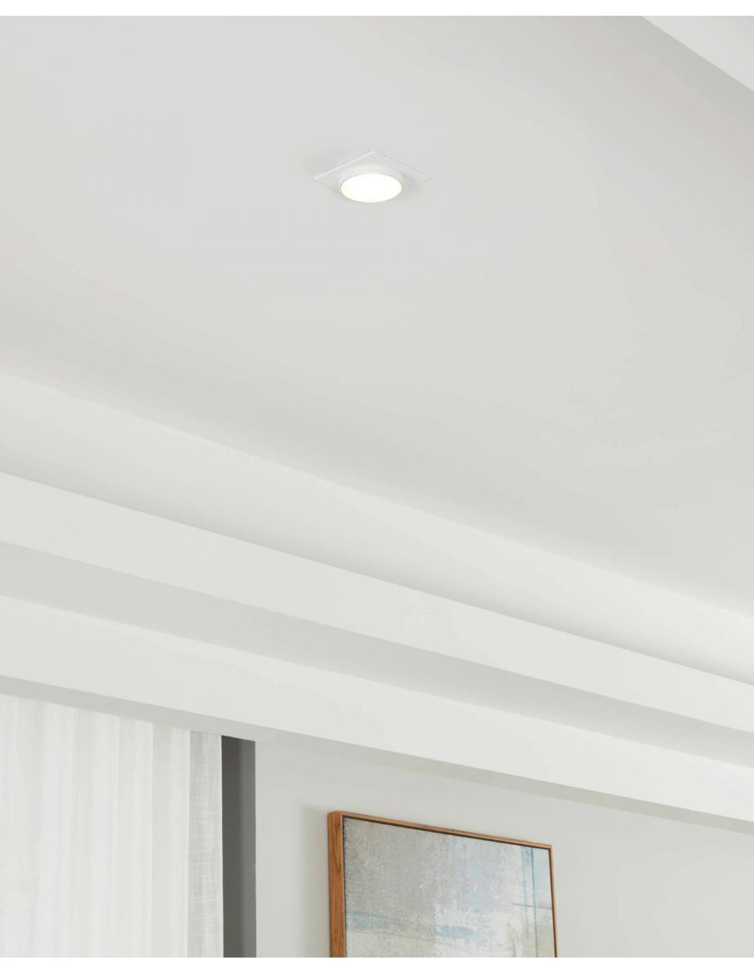 Square bicolor recessed lamp made of aluminum with circular piece all in white ideal to not take up space in your home and illuminate any corner. Works with a GU10 bulb, not included.