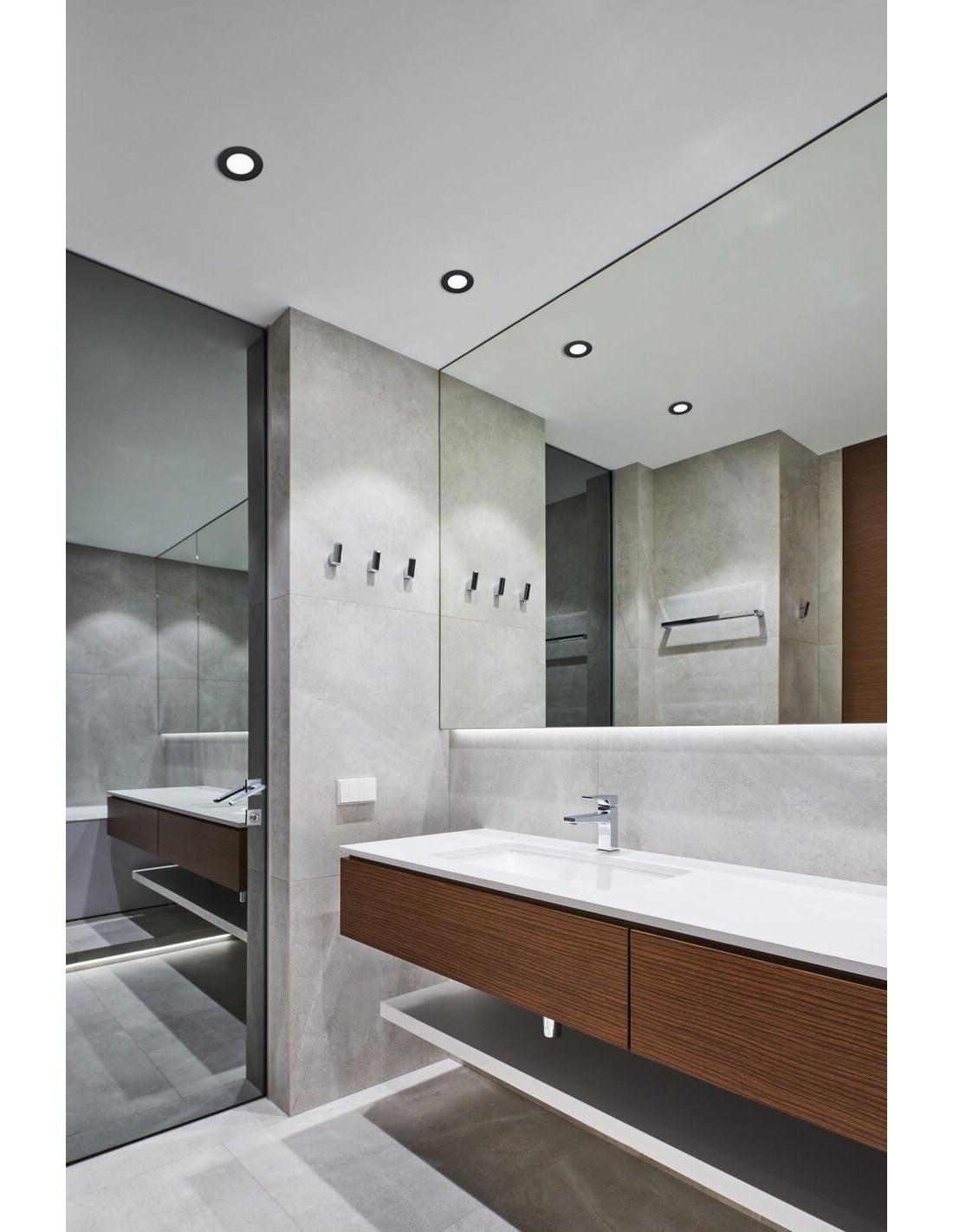 Recessed led lamp in round black color with 2'7W power and neutral light temperature 3000k. It has 300 lumens and has a diameter of 8.6 cm.