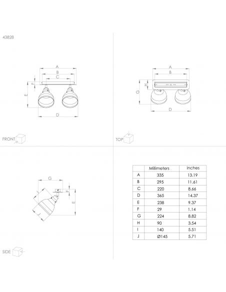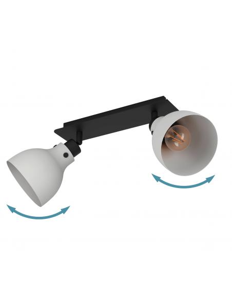 Ceiling spotlight with 2 dirigible lights with black steel base and gray tulips of the same material. Perfect for passageways or small rooms. It uses two E27 socket bulbs, not included.