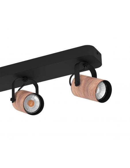 4-light GU10 brown wood spotlight with black base - EGLO Cayuca