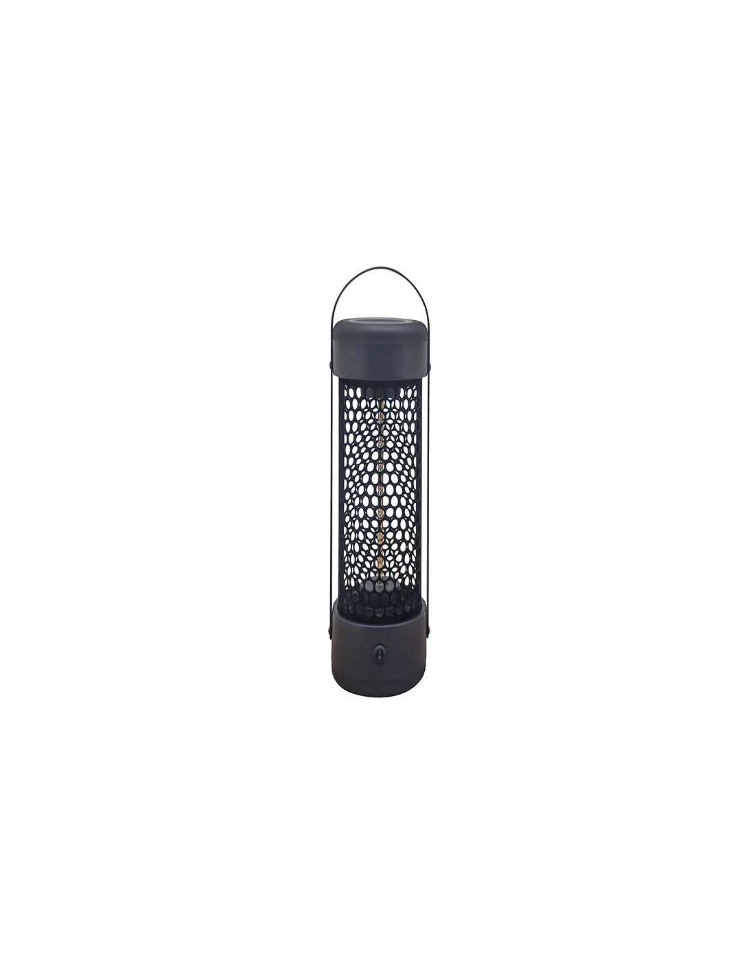 Outdoor electric stove lantern type. Made of metal and plastic, black finish. With special protective grid and metal base. 1,200W halogen heating. Cable:1.8 m. IP55.