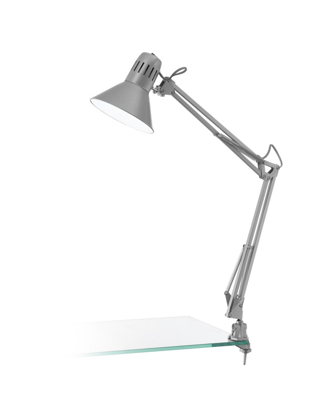 High height articulated flexo with grip clip in gray color. Made of steel and acrylic. Requires an E27 bulb, NOT INCLUDED.