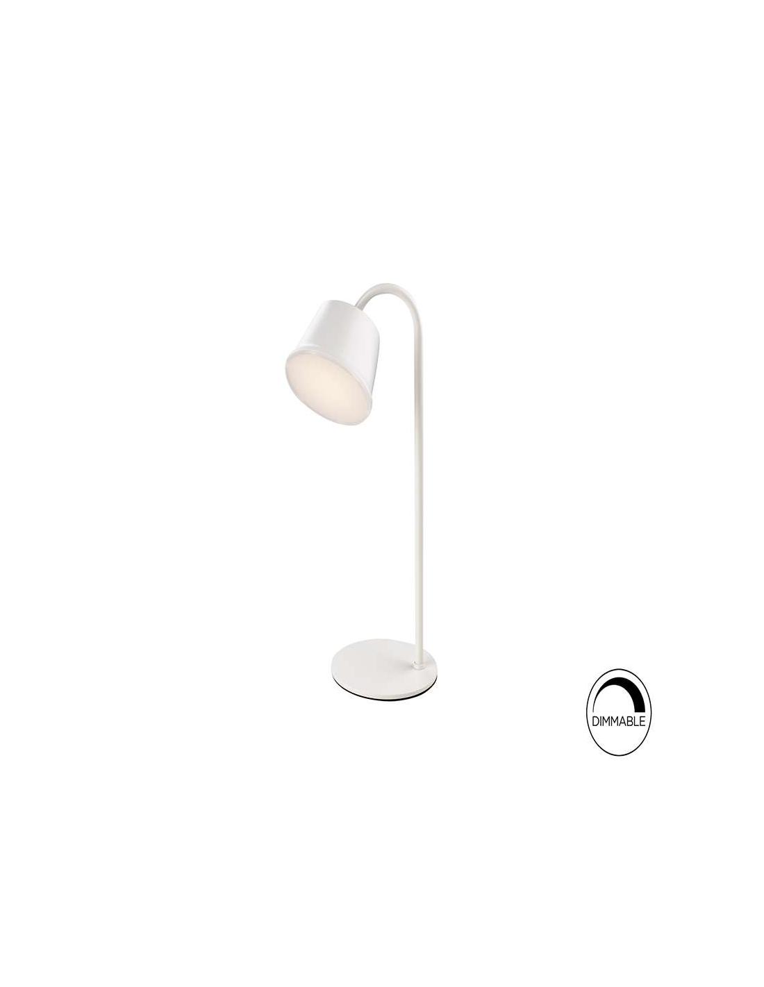 LED table lamp for outdoor, includes magnetic accessories to use as a wall light or pendant. Made of white finished metal and opal acrylic diffuser. Rechargeable battery. 3W LED, 200lm, 3000K. DIMMABLE. IP54.