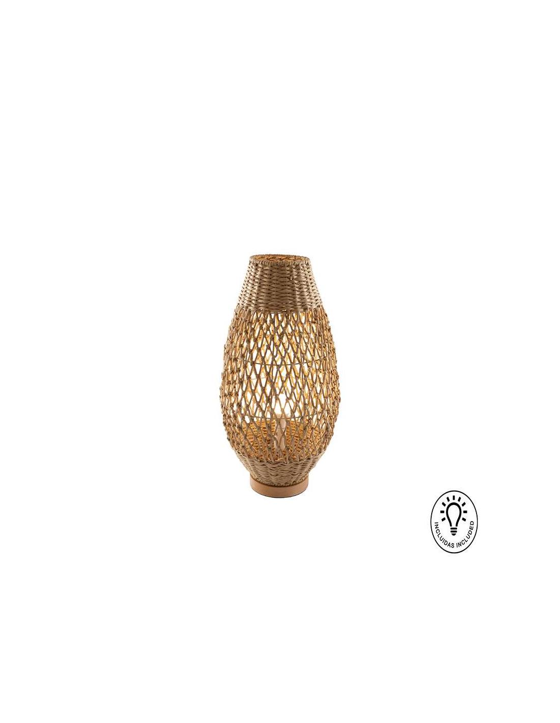 Large table lamp with 1 light, made of metal and wood, with a braided paper rope shade finished in beige.