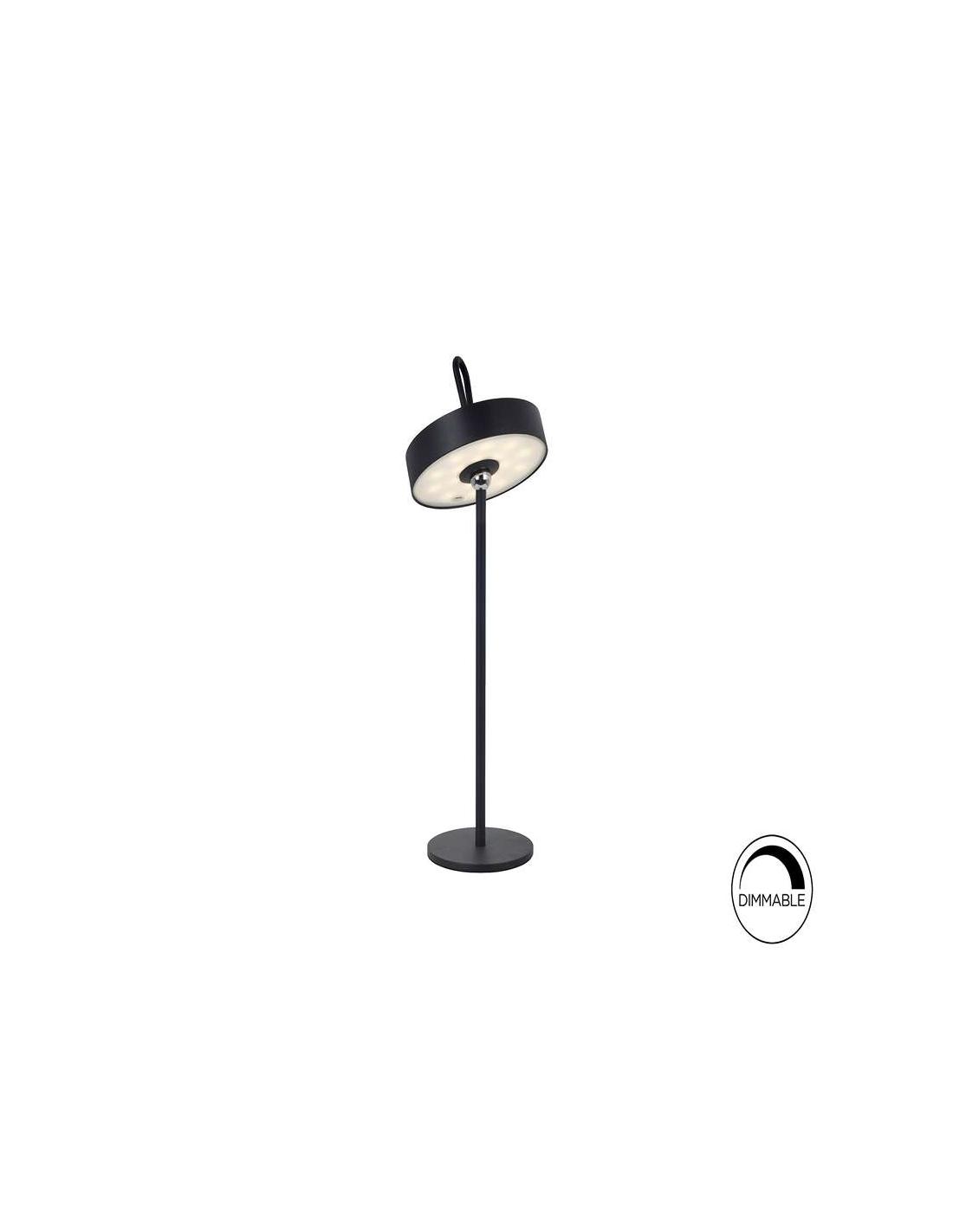 LED table lamp for outdoors, portable screen with silicone handle and magnetic stand. Made of black finished metal and opal acrylic diffuser. 2.5W LED, 140lm, 3000K. DIMMABLE. IP54.