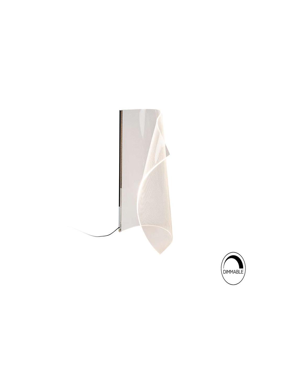 Table lamp formed by a sheet of molded microprinted methacrylate and chrome metal profile. LED lighting 10W 600 lm 3,000K. DIMMABLE.