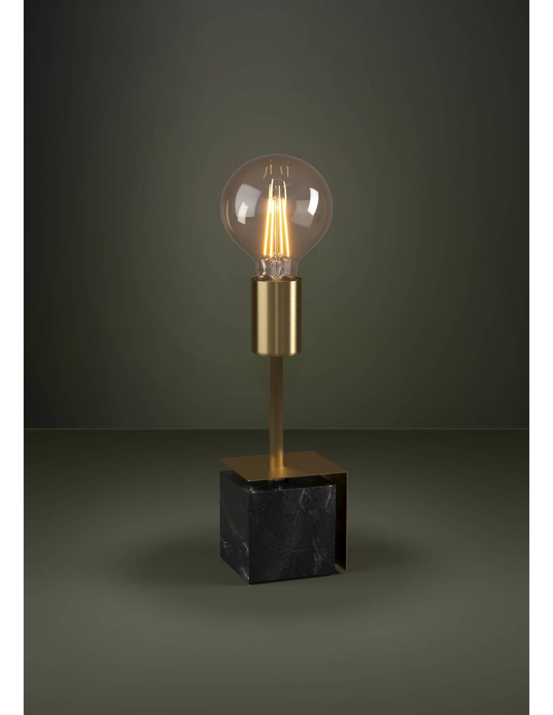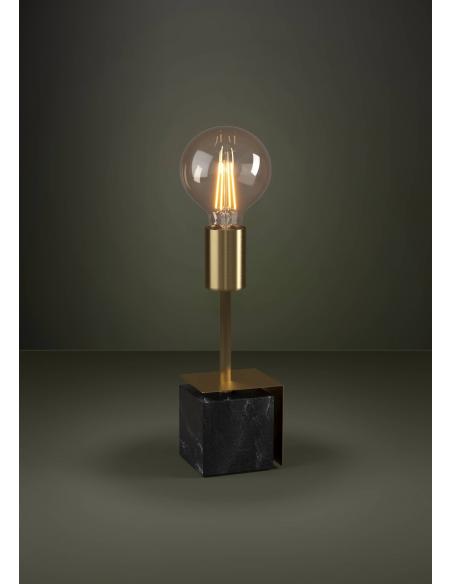 Table lamp with dark stone detail and steel structure with gold finish. A unique and very elegant piece that will give you a different and innovative touch in any corner. Uses E27 bulb, NOT INCLUDED.