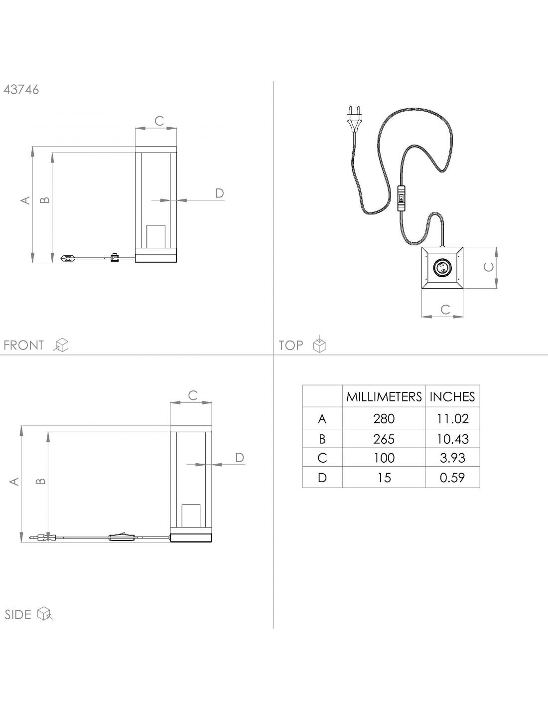 Wooden table lamp with black steel base. A piece designed in geometric format that reveals the bulb (not included) and that allows to decorate as well as illuminate a bedside table in a bedroom. It is operated with a cable switch and uses an e27 socket bulb, not included.
