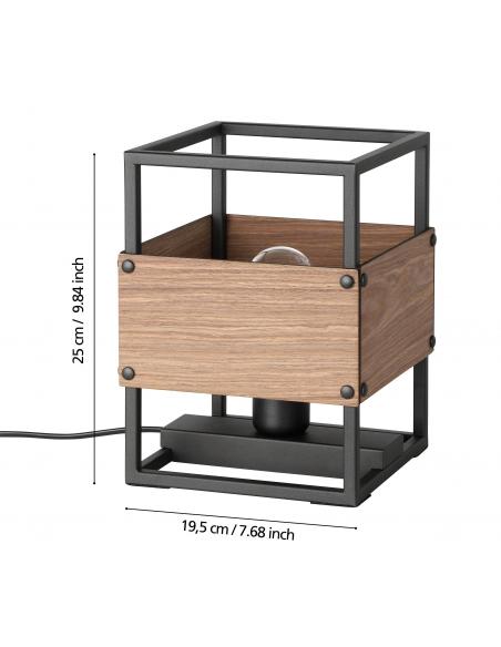 Rustic table lamp with black steel structure and base and wooden frame type shade with antique finish. The piece of wood that serves as a screen is perfect for, in addition to decorating, not allowing the complete passage of light to avoid glare. Perfect for industrial and rustic decorations. Requires an e27 socket bulb, not included.